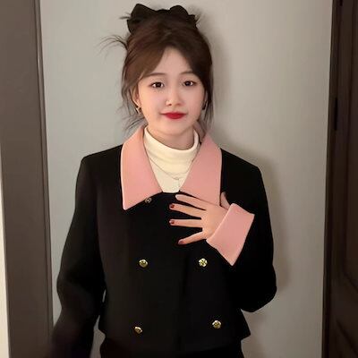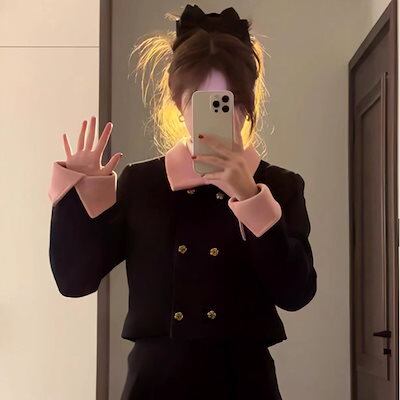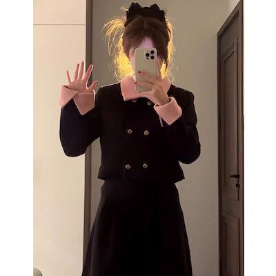 きれいな女装 ウール秋冬新作ラペルショートスタイル長袖コートレディースミドル丈スリムスカートツーピーススーツ