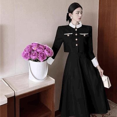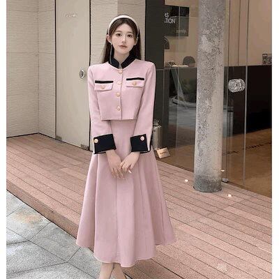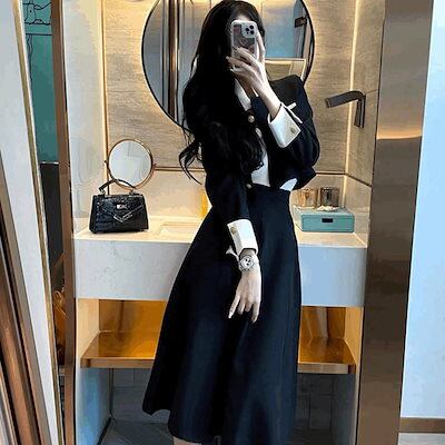 きれいな女装 フレンチスタイル秋冬ショートコートハイウエストハーフレングススカートファッショナブルレディ気質韓国女性用ツーピーススーツ