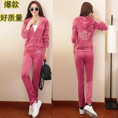 きれいな女装 2024ゴールドベルベットスポーツスーツレディース秋冬ファッション大きいサイズカジュアル2点セット