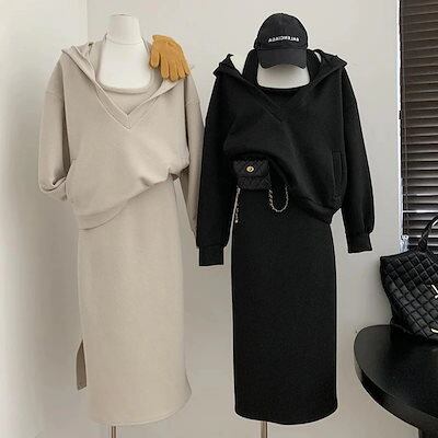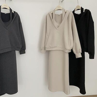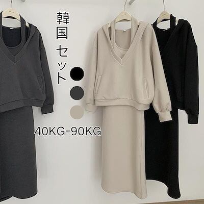 今年の流行 韓国ファッション3点セットセットアップ 秋と冬 セット ゆったり フード付き ワンピース スウェット ジャケット ツーピース着痩せ ゆったりスウェット上下セットレディース ジャージ ニット