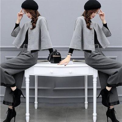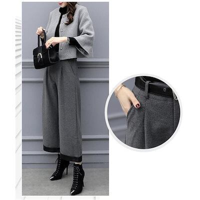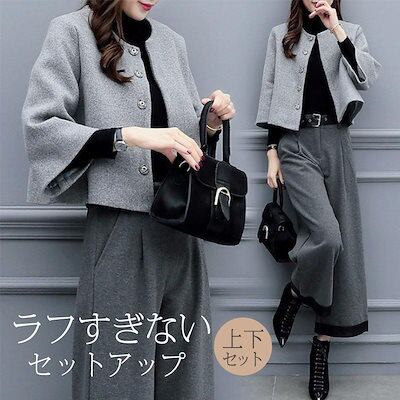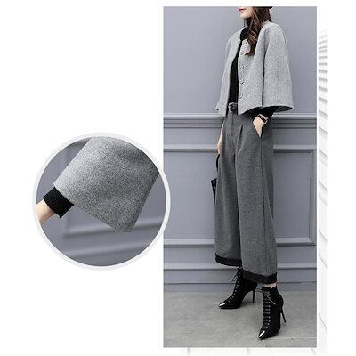 セットアップ レディース 上下セット ワイドパンツ ジャケット 厚手 ゆったり 秋冬 通勤 フォーマル 卒業式 防寒 冷え対策 着痩せ きれいめ