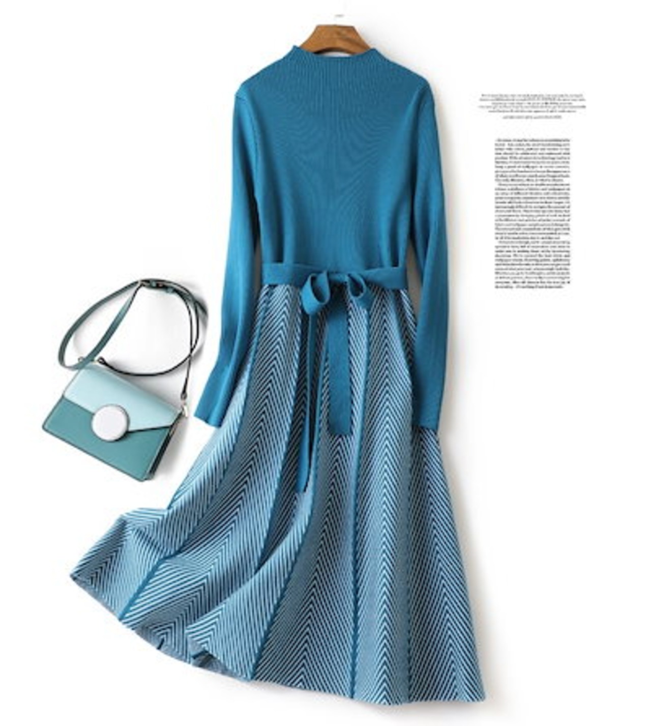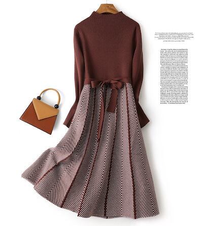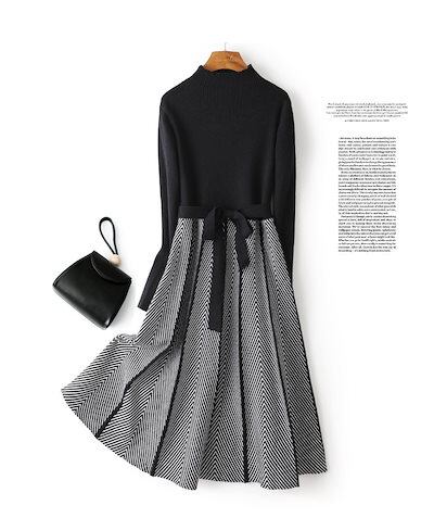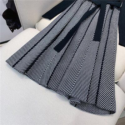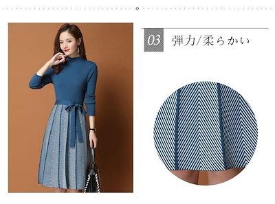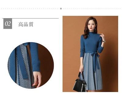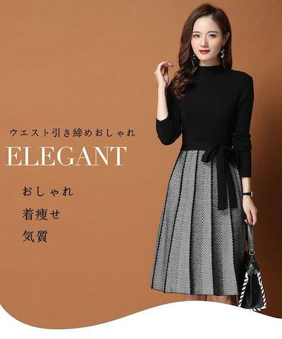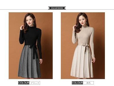 ニットワンピース レディース ベーシックニット 秋冬 きれいめ 膝丈ワンピース 長袖 リボン Aラインプリーツスカート ニット 結婚式ドレス 通勤 ロング 着痩せ オシャレ