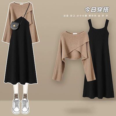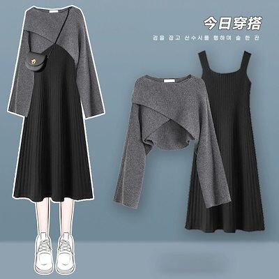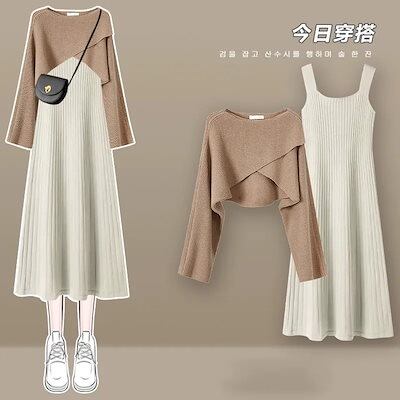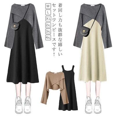 2024人気 秋服セットワンピース レディース ニット セットアップ 秋冬 セーター 人気商品超目玉 ニットセットアップ 2点セット レディース 春秋 秋冬 ニット セーター クロス 長袖 フレアス