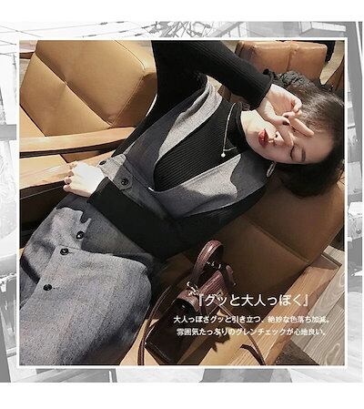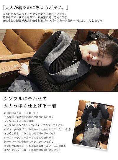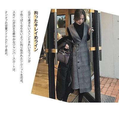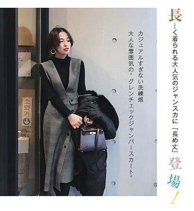 ジャンパースカート 秋 冬 ジャンスカ ワンピース グレンチェック セットアップ サロペットスカート ワンピーススーツ ミモレ レディース オールインワン ニット インナー タートルネック 長袖
