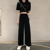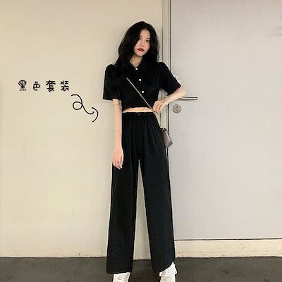夏 二点セット ワイドパンツ レディース 百掛け 上下セット 新作 涼しく楽ちんセットアップ ジャージ 着痩せ