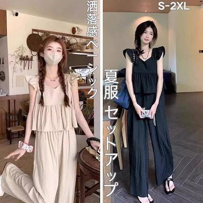おしゃれ セットアップ 夏服 二点セット ワイドパンツ 2024 新作 カジュアル セット