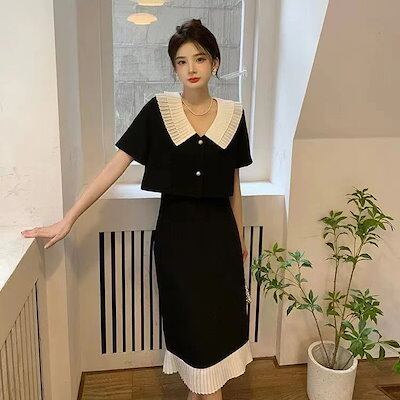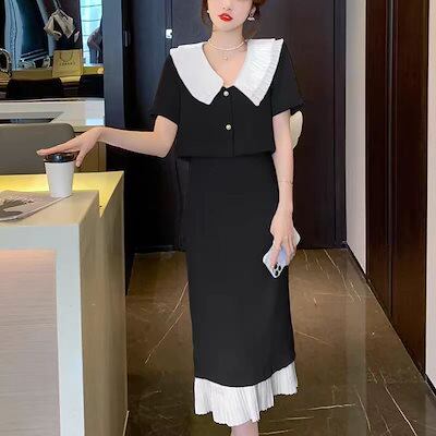 百掛け エレガント 新作 セットアップ 二点セット 着痩せ スカート 夏服