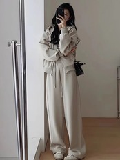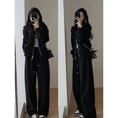ワイドパンツ フード付き セット アスレチック ツーピースセット 初秋 セットアップ レディース スウェット
