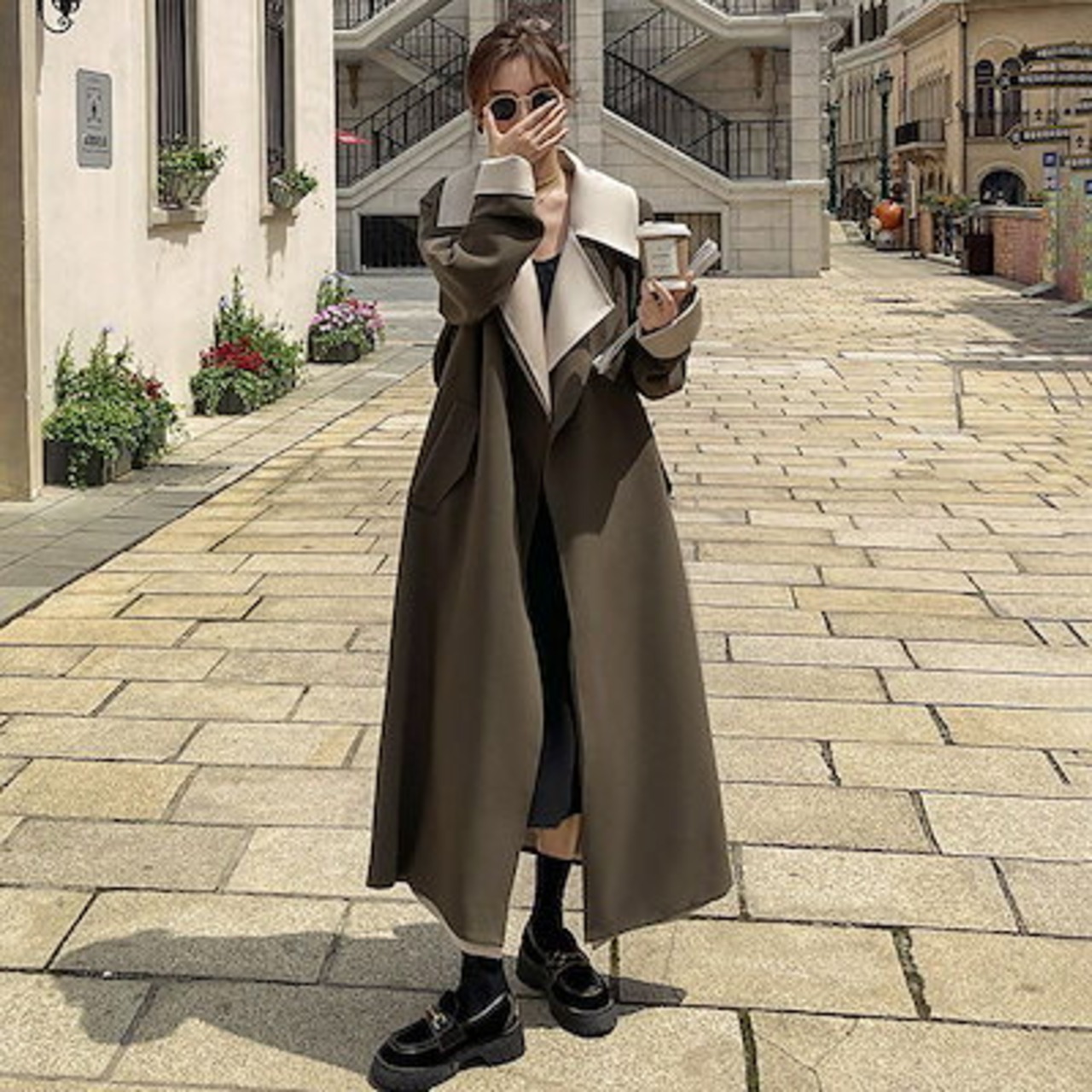 2025春 新作 可愛い トレンチコート AWアウター 秋 セミロング コート 流行りコート ジャケット 英?風 ロングコート レディース トップス 大きいサイズ 大人っぽチェスターコ 春トレンチコー