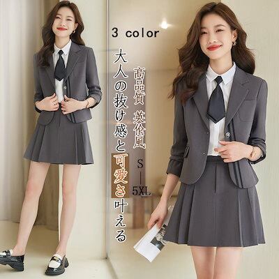 【無.料】新作 英?風 二点セット 着痩せ レディース スーツセット 春AWアウター 卒業式 スカートセット スーツジャケット 入学式 卒園式 通勤