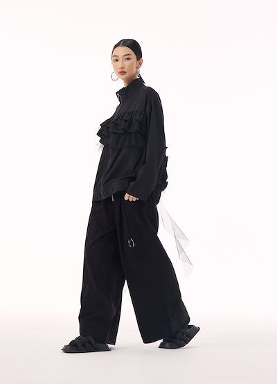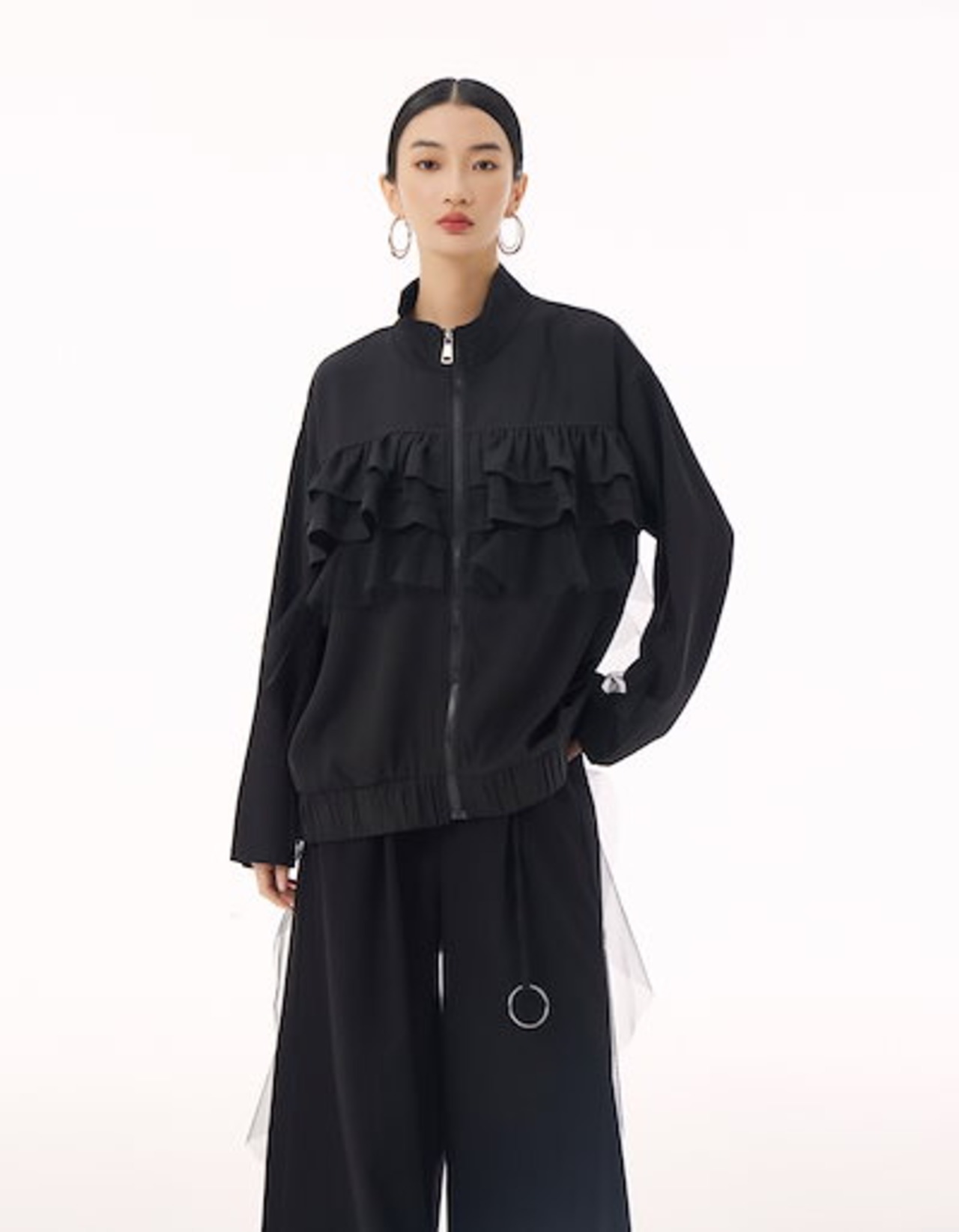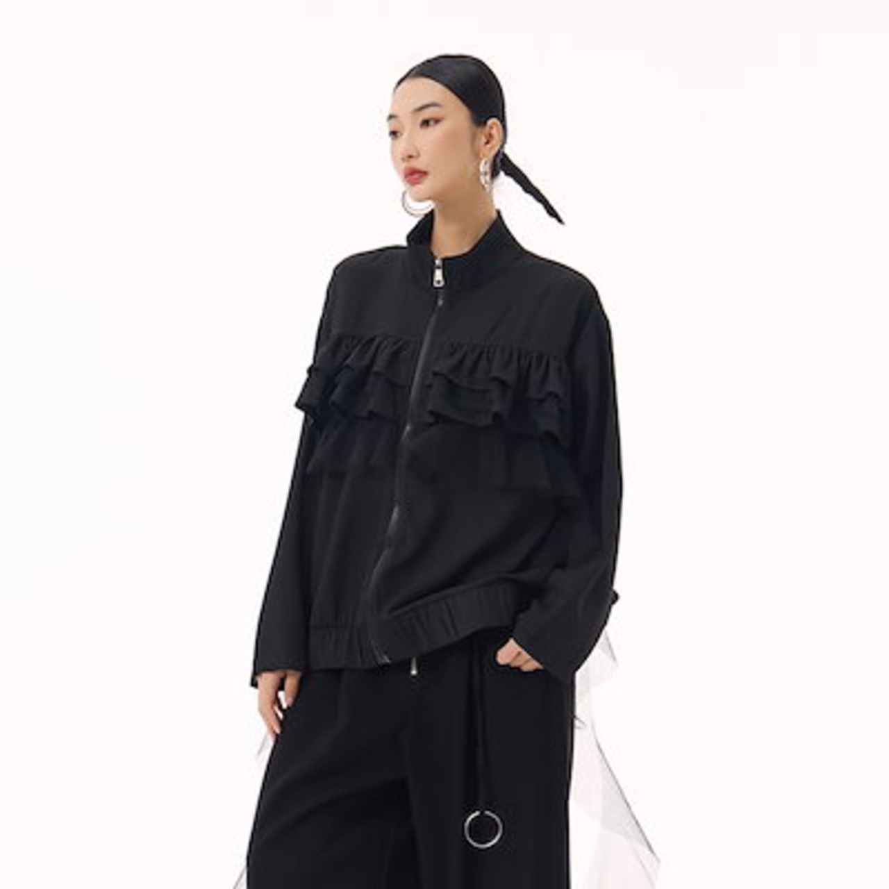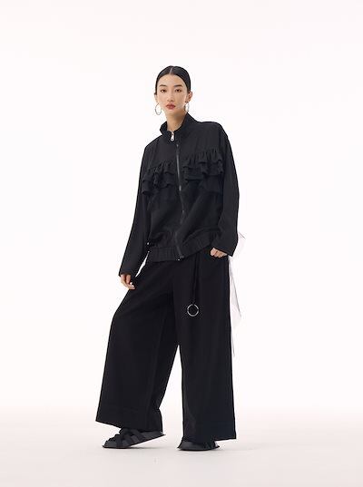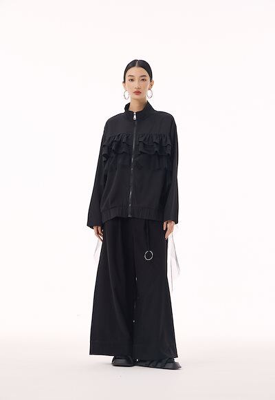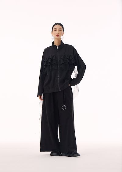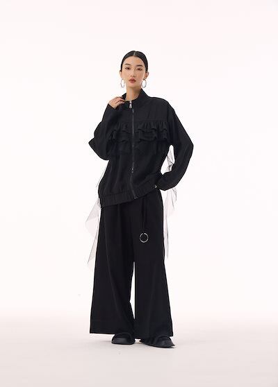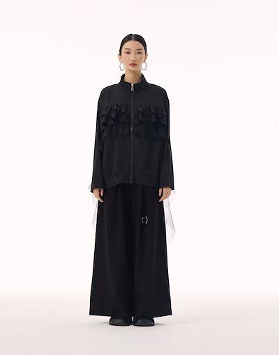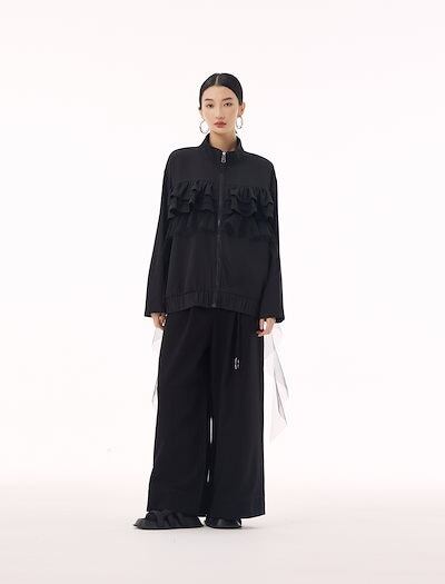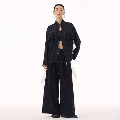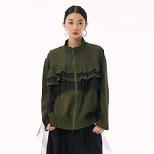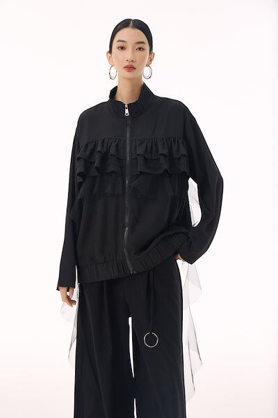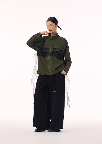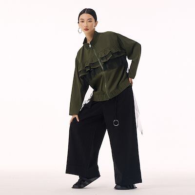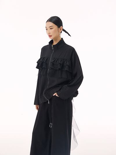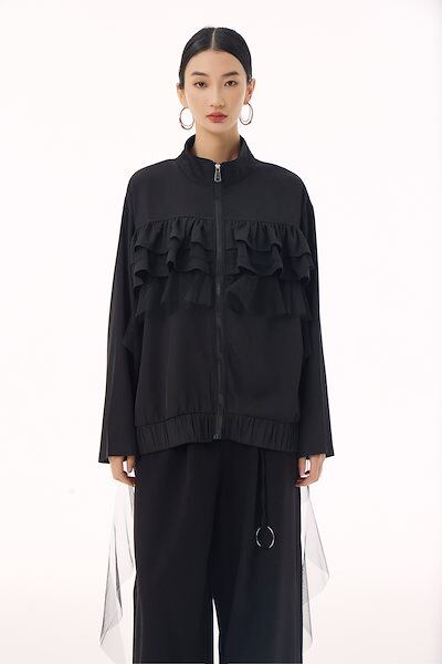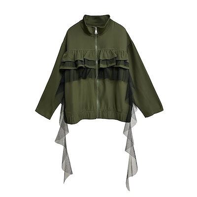 【J.Fashion】 ジャケット チュールドッキング フリル おしゃれ レディース 春 アウター 関連商品購入可能 メガ割