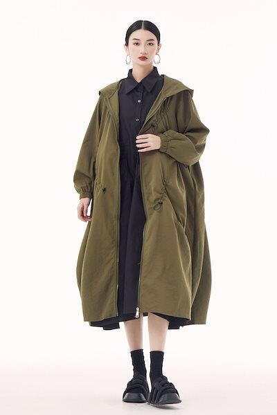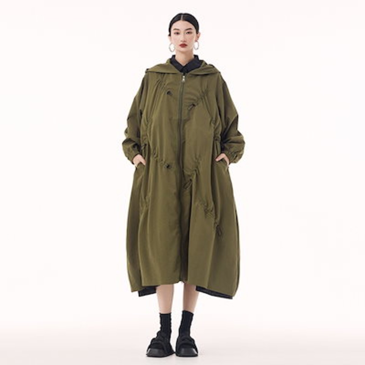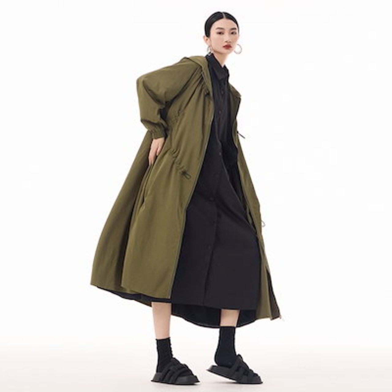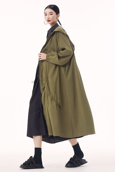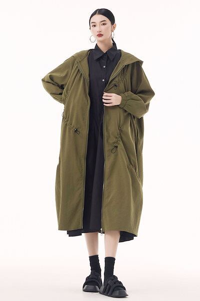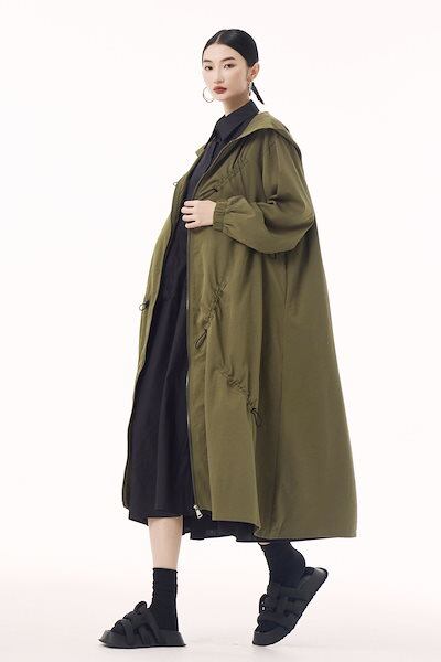 【J.Fashion】 ロングコート フード付き巾着 春 おしゃれ レディース トレンチコート 関連商品購入可能 メガ割