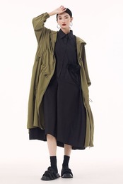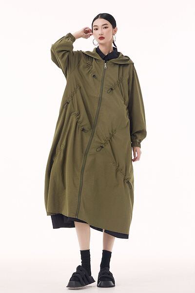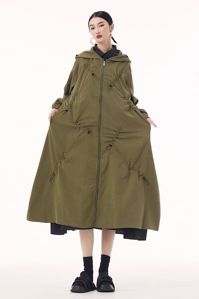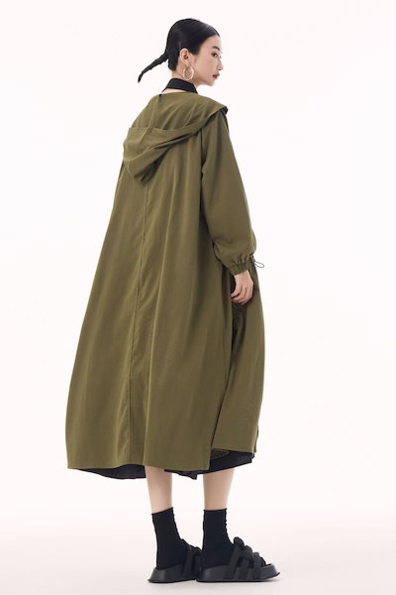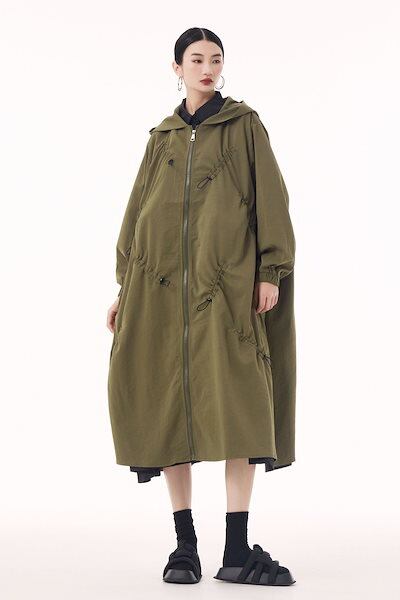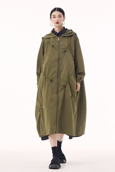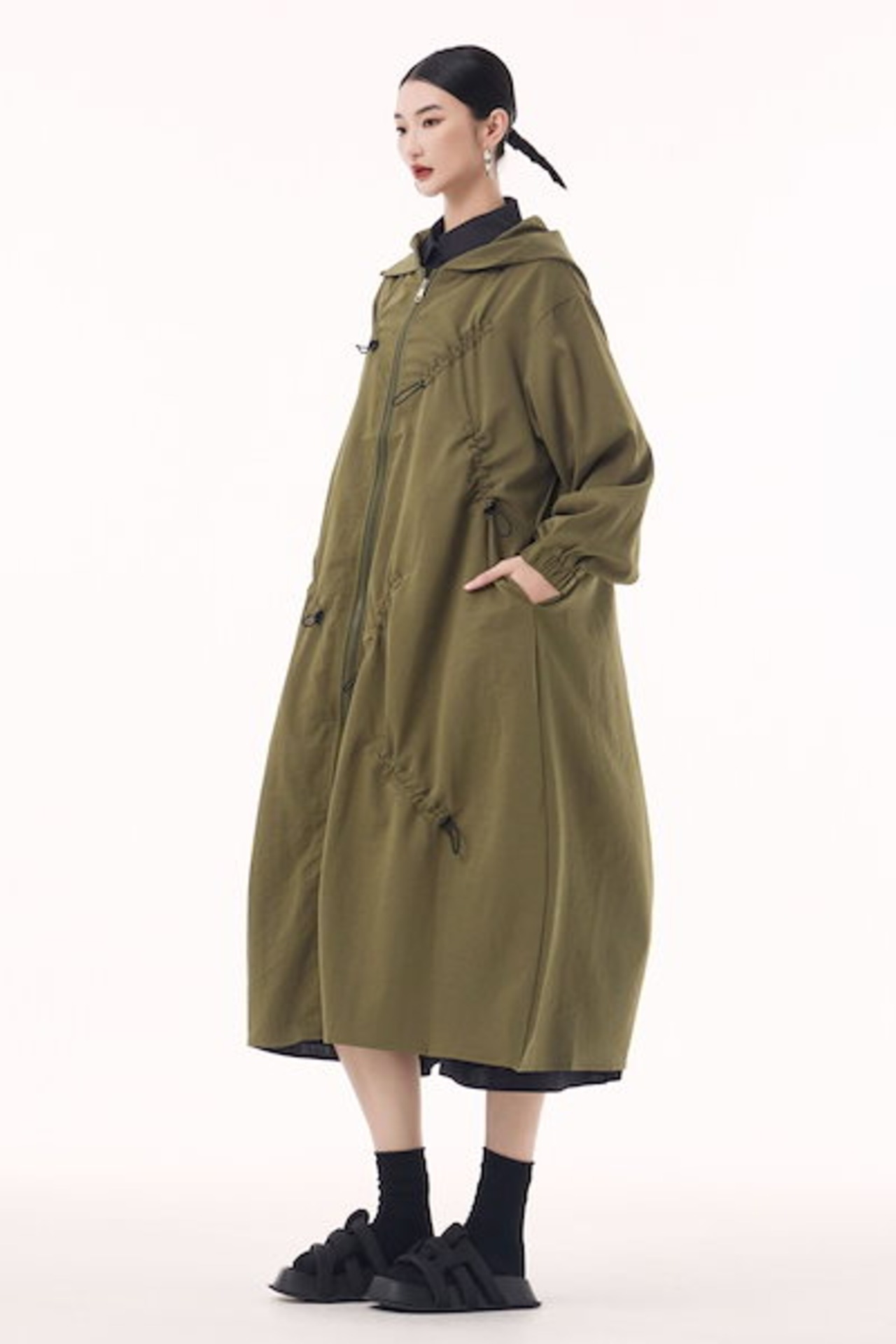 【J.Fashion】 ロングコート フード付き巾着 春 おしゃれ レディース トレンチコート 関連商品購入可能 メガ割
