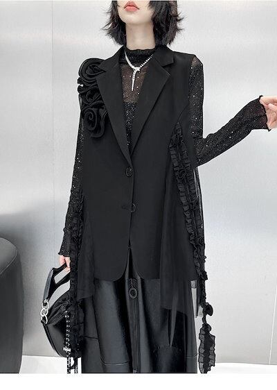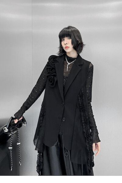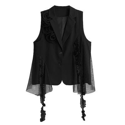 【J.Fashion】 2025春 スーツベスト 花飾り 袖なし おしゃれ レディース ノースリーブ ベスト 関連商品購入可能 メガ割
