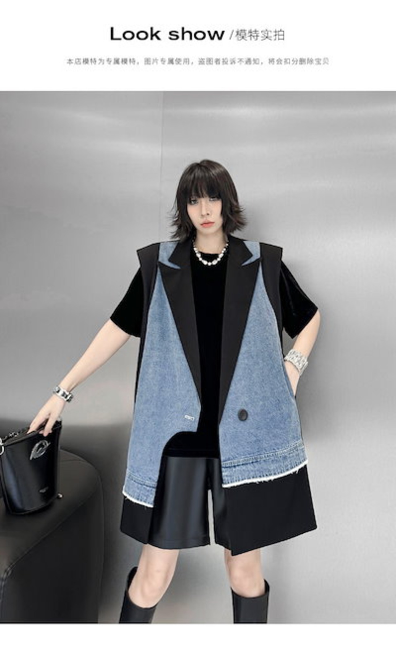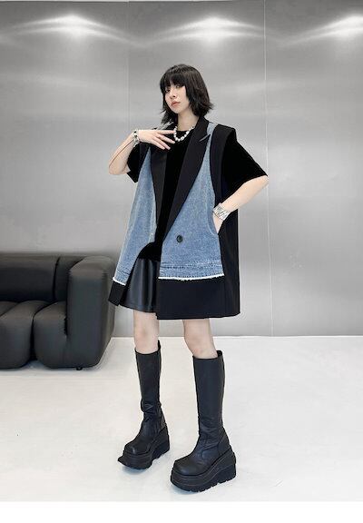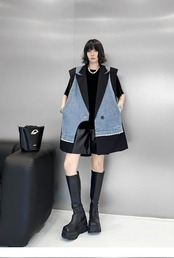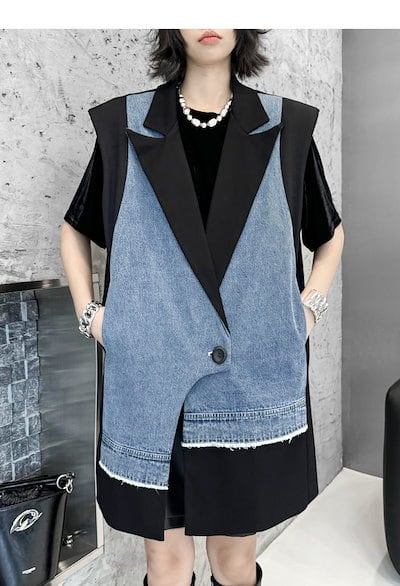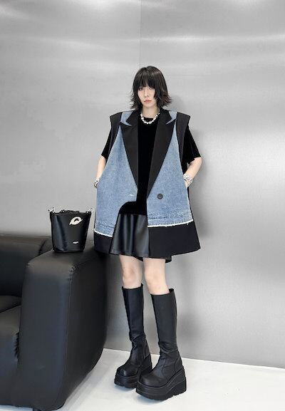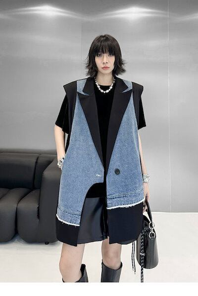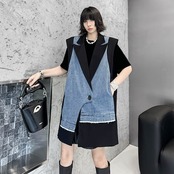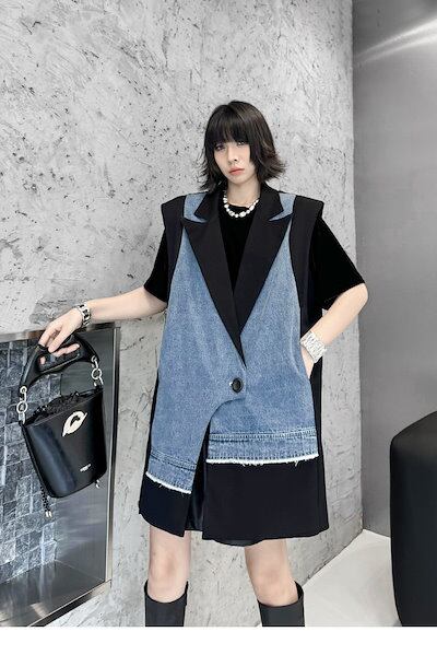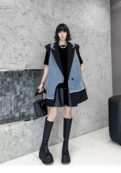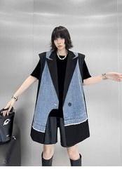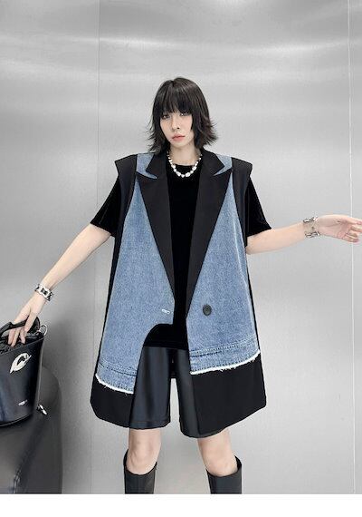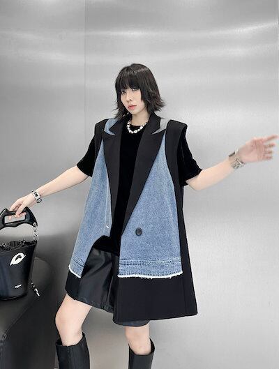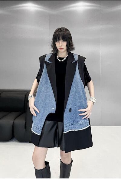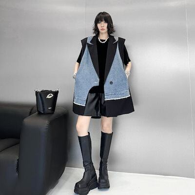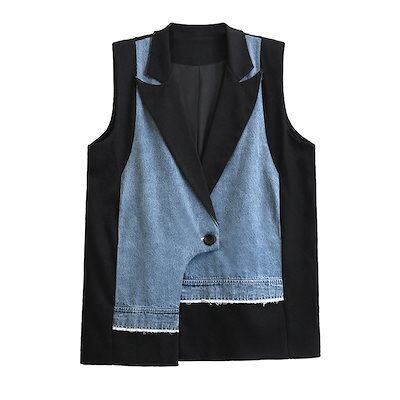 【J.Fashion】 2025春 デニムベスト スーツベスト ドッキング おしゃれ レディース アウター 関連商品購入可能 メガ割