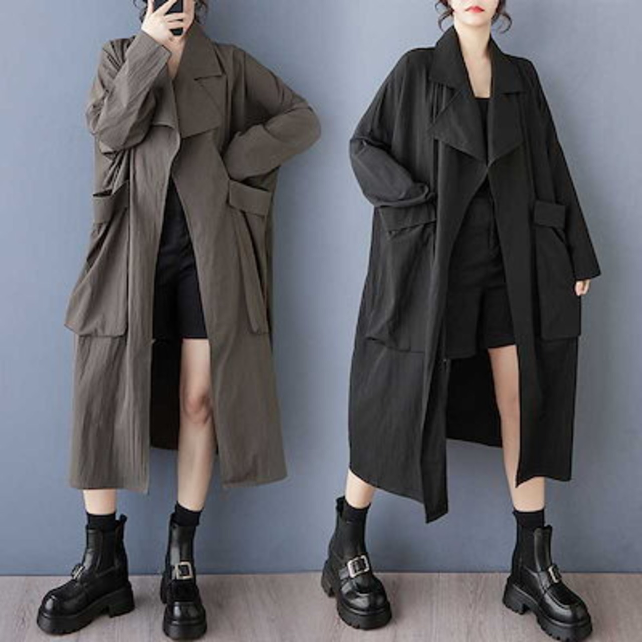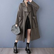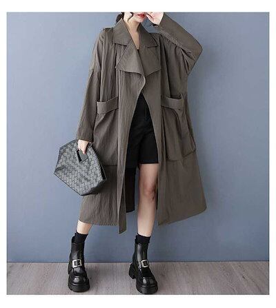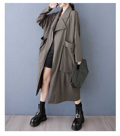 「ファットガール」 2025春 トレンチコート 大きいサイズ 体型カバー レディース ドッキング ロングコート アウターメガ割