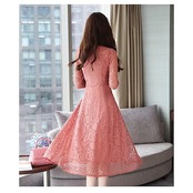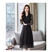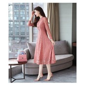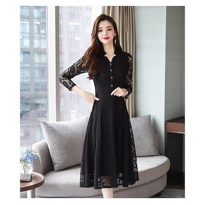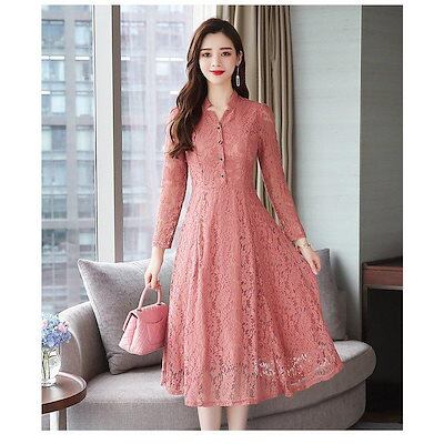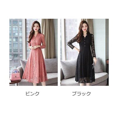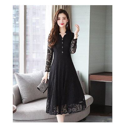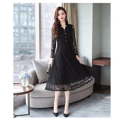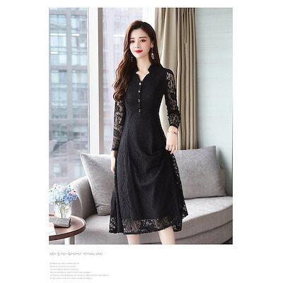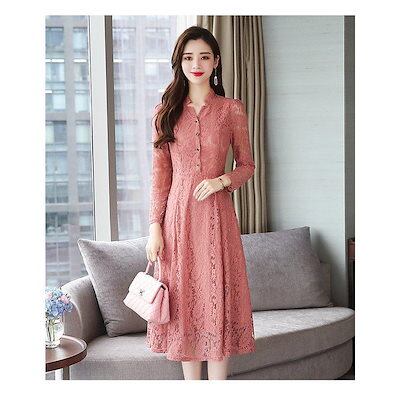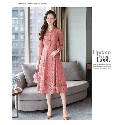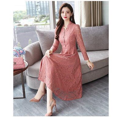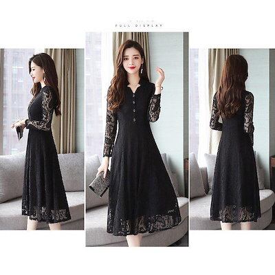 ワンピース レディース 40代 きれいめ マキシワンピース 春秋 長袖ワンピース レース Vネック Aラインスカート オシャレ大人 レース 結婚式ドレス 30代 50代