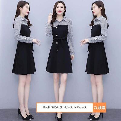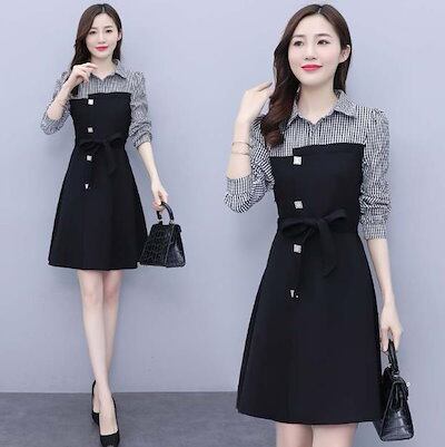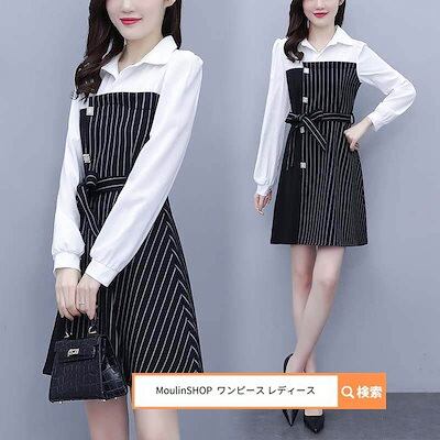 秋 長袖 大きいサイズ ワンピース レディース レディース ロングワンピース シャツワンピース ロング 膝丈 きれいめ Aライン 切り替え 大人 黒 春 春夏 夏
