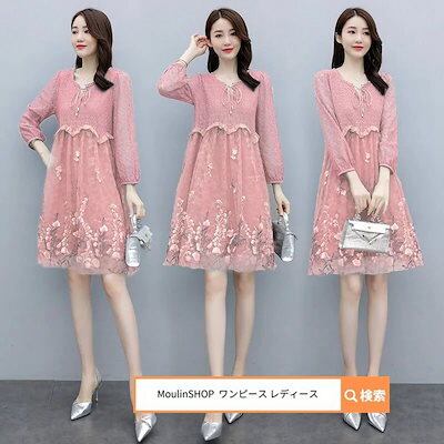 ワンピース レディース 春 春夏 レディース ミニワンピース レース 花柄 ミニ 膝丈 きれいめ Aライン 大人 フォーマル ミディアム丈 夏 秋 長袖 大きいサイ