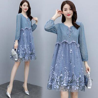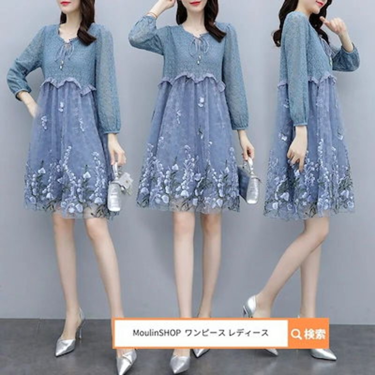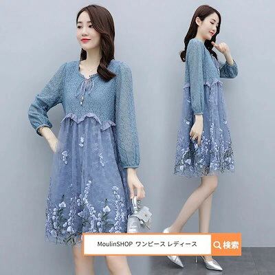 レディース 春 春夏 レディース ミニワンピース レース 花柄 ミニ 膝丈 きれいめ Aライン 大人 フォーマル ミディアム丈 夏 秋 長袖 大きいサイ