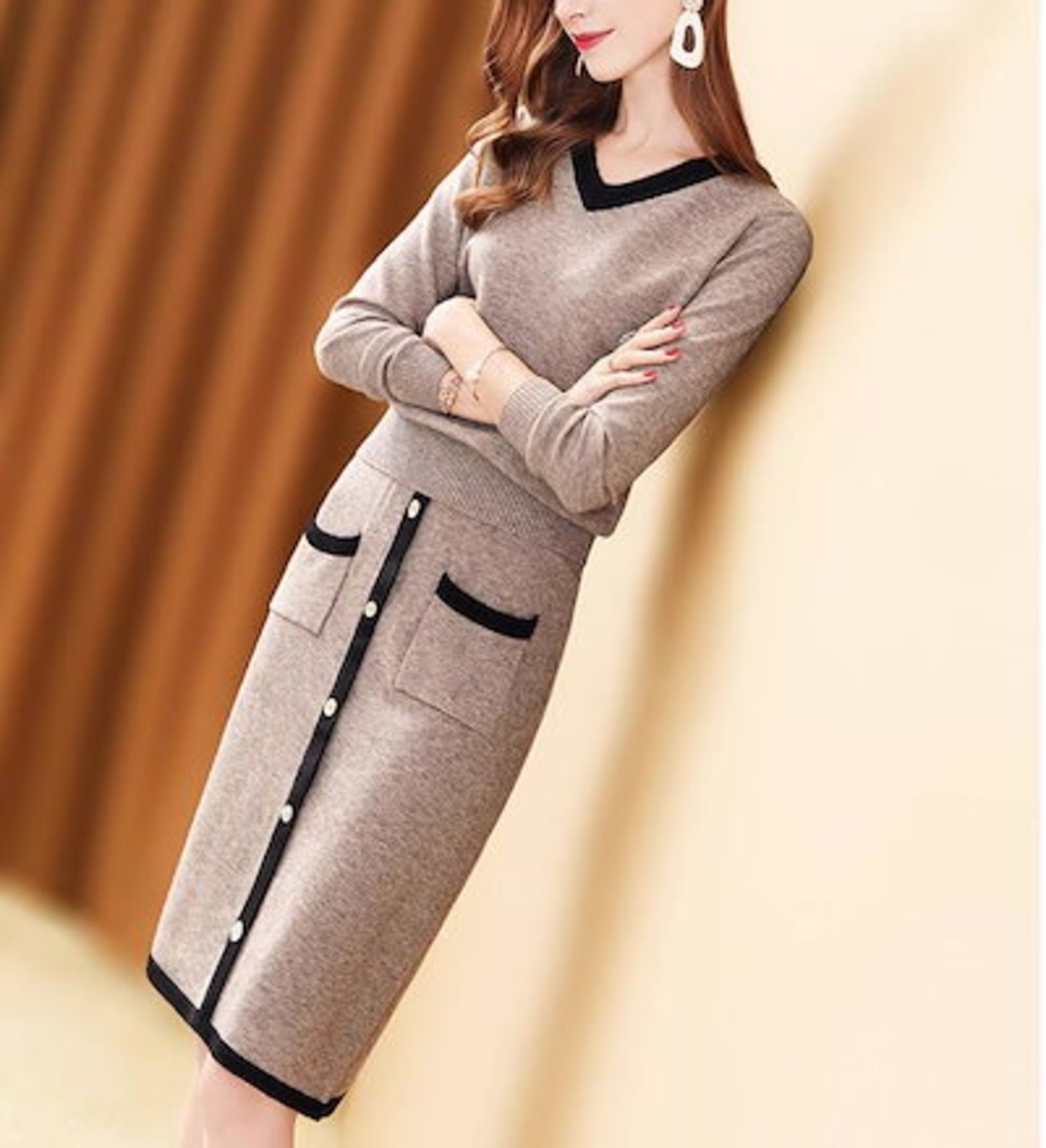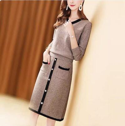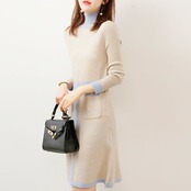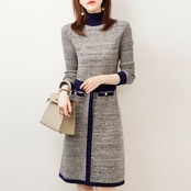 ニットワンピース レディース ハイネック 膝丈 ひざ丈 Aライン きれいめ タイト 通勤 秋冬 長袖 ワンピース 体型カバー セーター おしゃれ