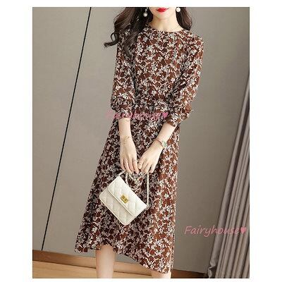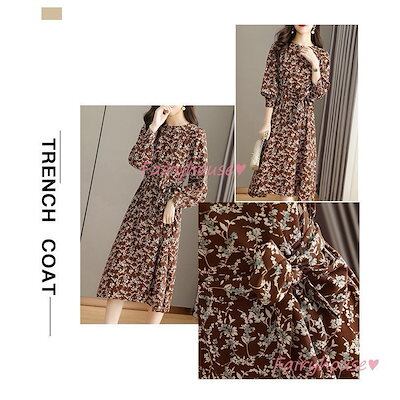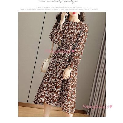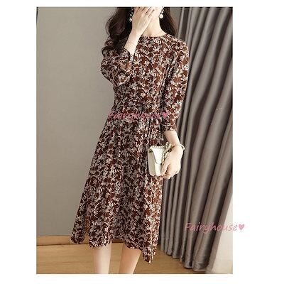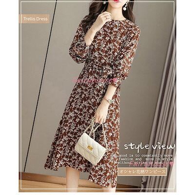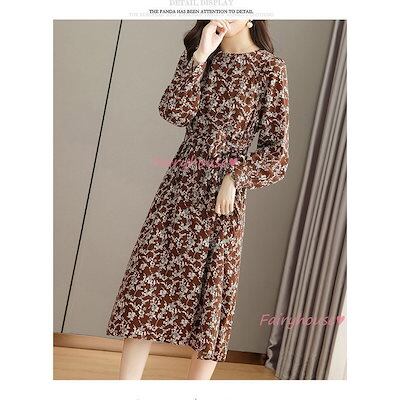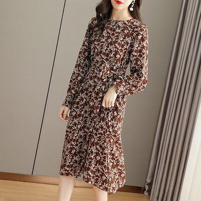 ワンピース レディース 40代 きれいめ マキシワンピース 秋服 長袖ワンピース 花柄 リボン Aラインスカートオシャレお出かけ 大人 体型カバー 30代 50代