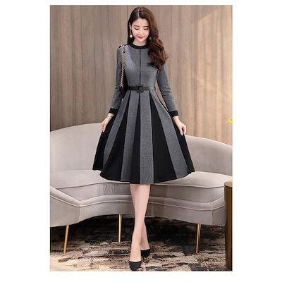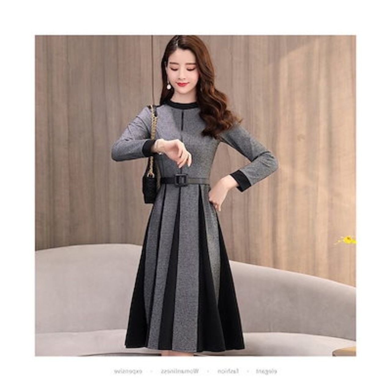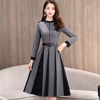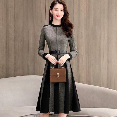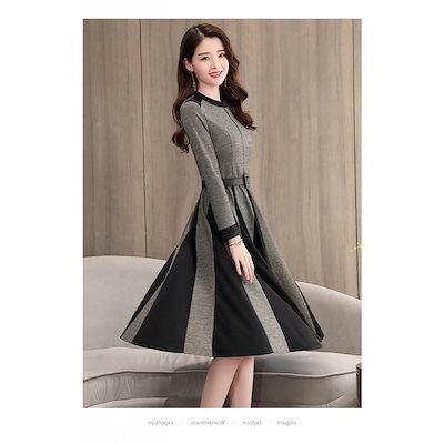 ワンピース レディース ロングワンピース 秋冬 ミモレ丈 長袖 Aラインワンピース 大きいサイズ ベ