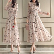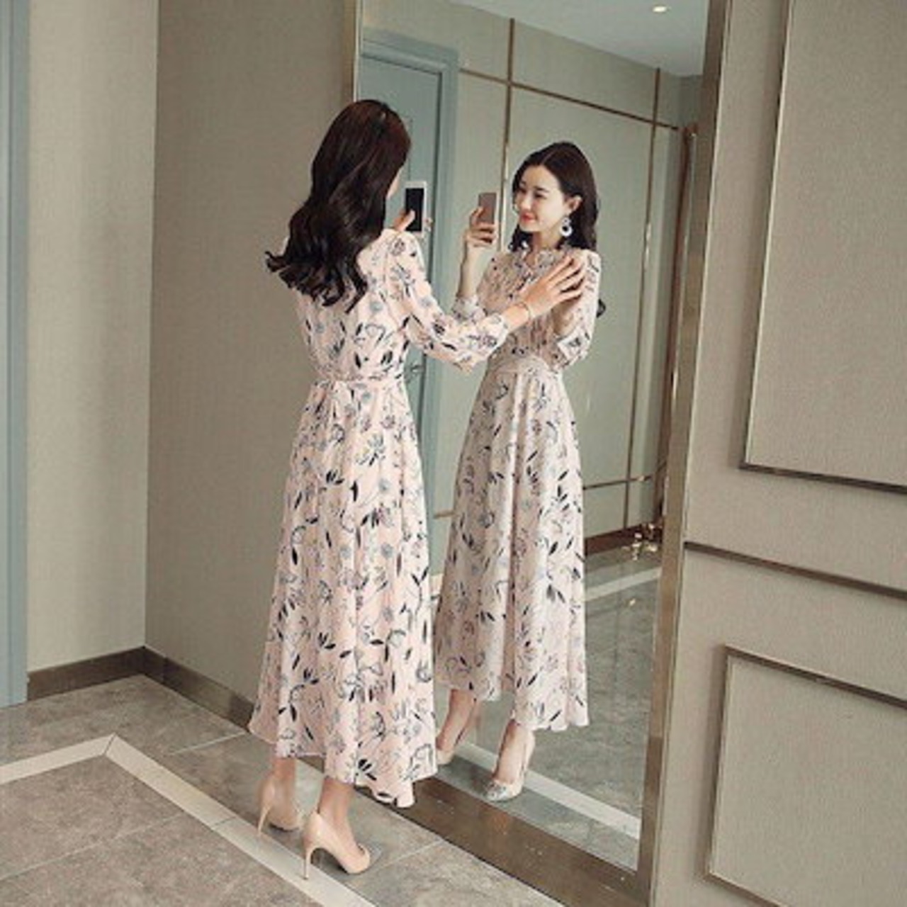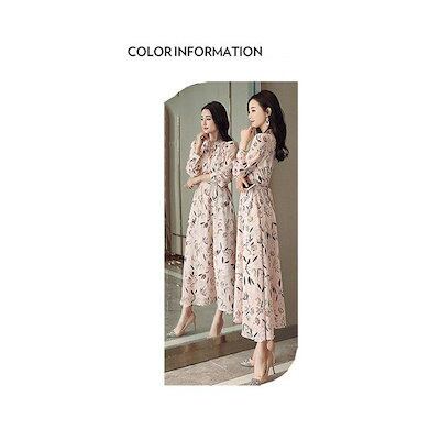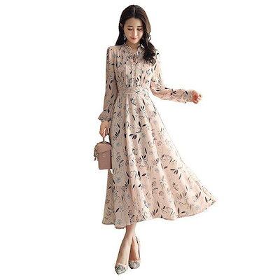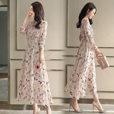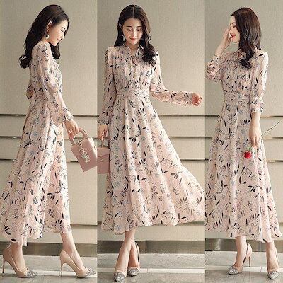 ワンピース レディース 春秋 花柄 Aライン シャツワンピース 長袖 ワンピース シフォン きれいめ ルロング丈 韓国風 オシャレ上品 着痩せ