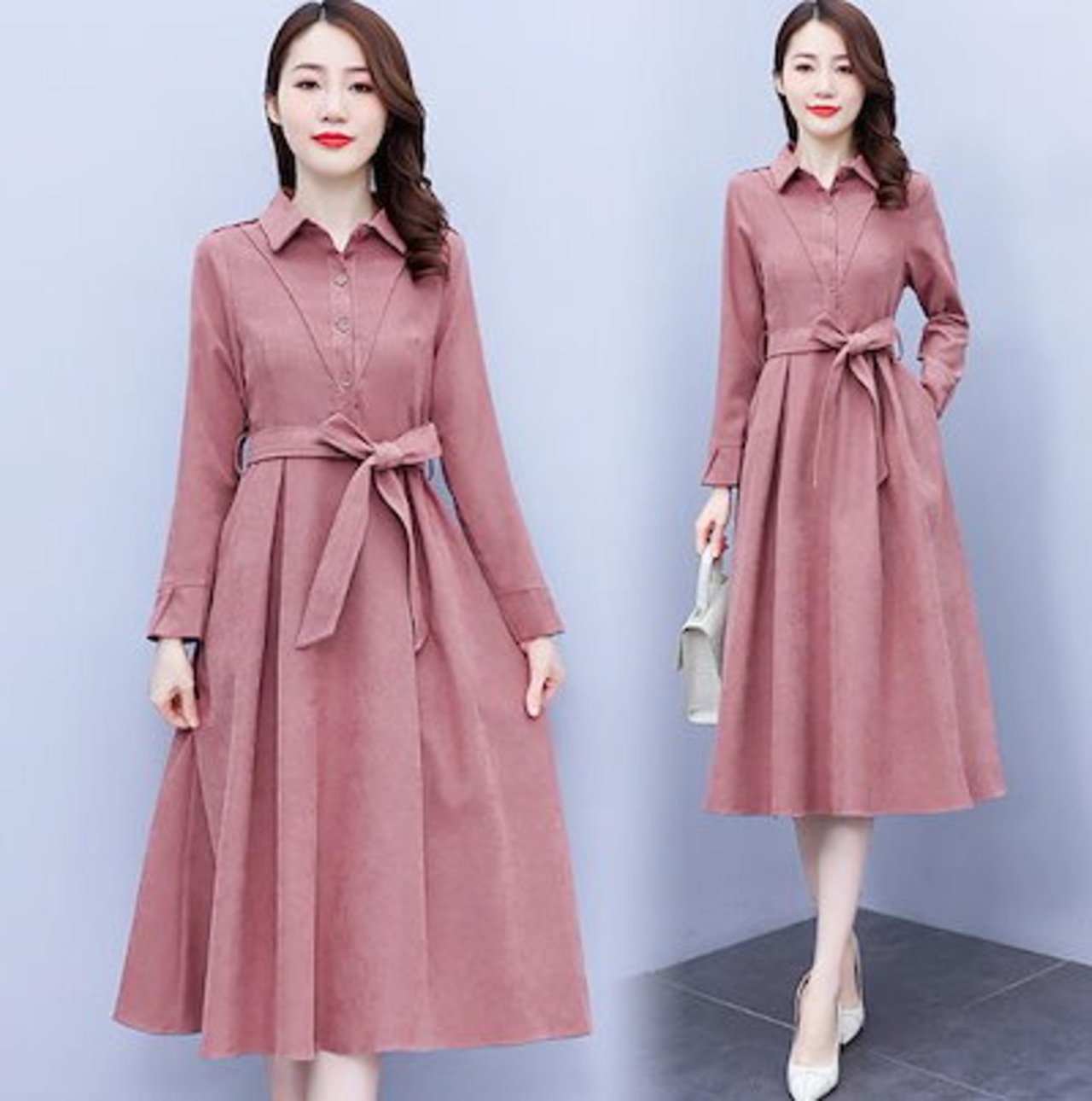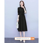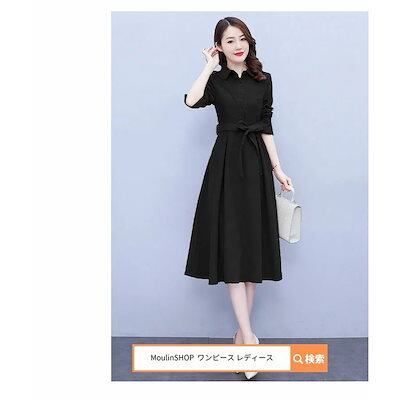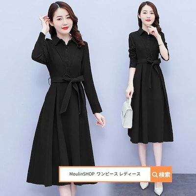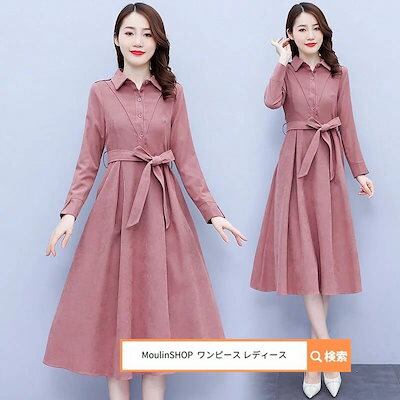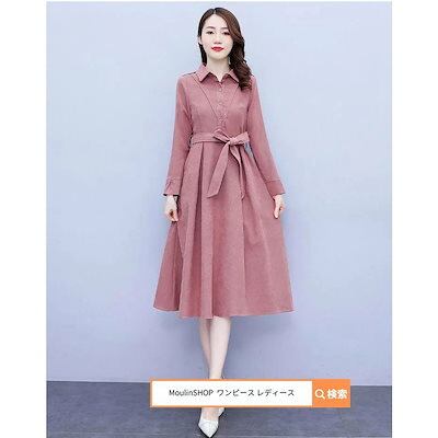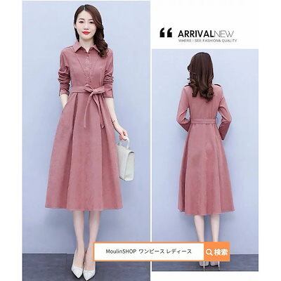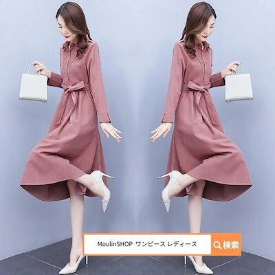 レディース レディース シャツワンピース ロングワンピース 韓国 プリーツ ロング ミモレ丈 きれいめ Aライン フレア 大人 上品 長袖 大きいサイズ