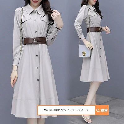 レディース レディース ロングワンピース シャツワンピース プリーツ ロング ミモレ丈 きれいめ Aライン フレア 大人 上品 長袖 大きいサイズ カジュ