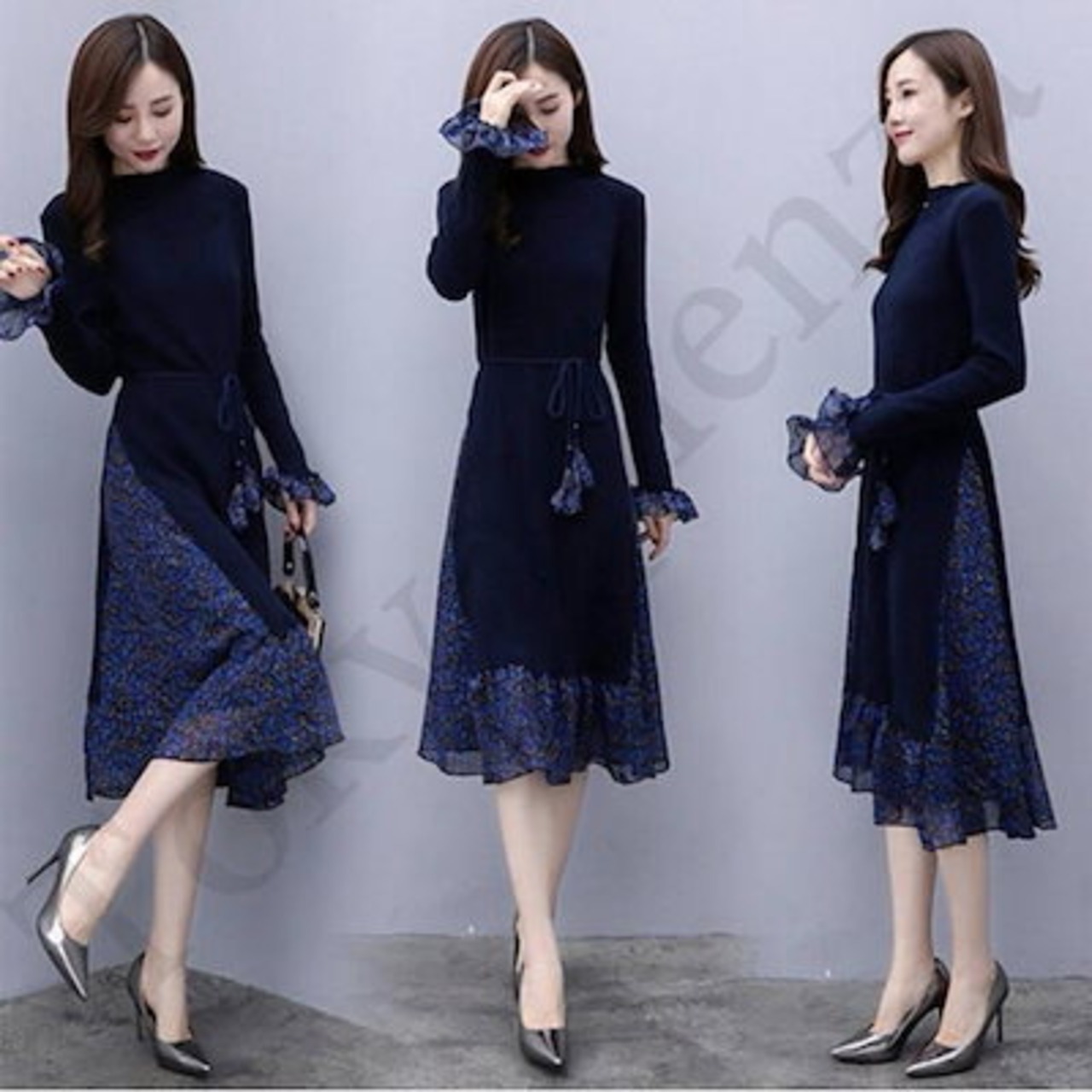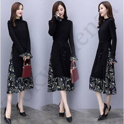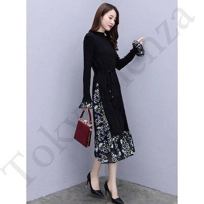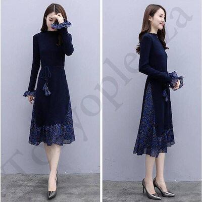 ワンピース ロングワンピース フレアワンピース 膝丈 切り替えワンピース Aライン ワンピ レディー