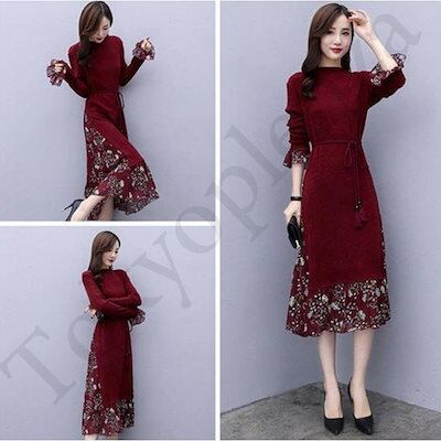 ワンピース ロングワンピース フレアワンピース 膝丈 切り替えワンピース Aライン ワンピ レディ