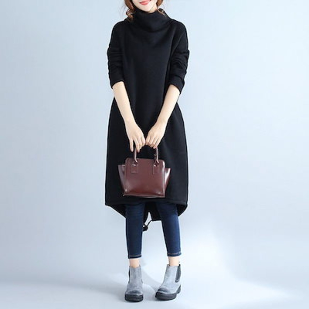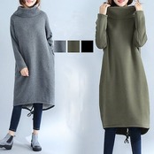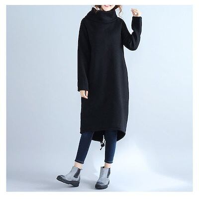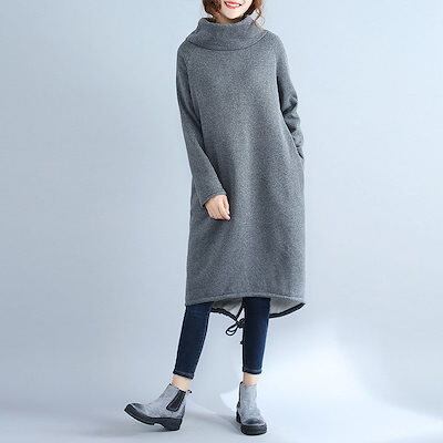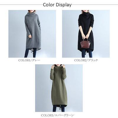 ワンピース 裏起毛 レディース ロング Aライン 秋冬 ハイネック 長袖 マキシワンピ タートルネッ