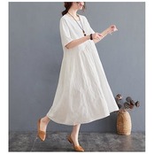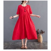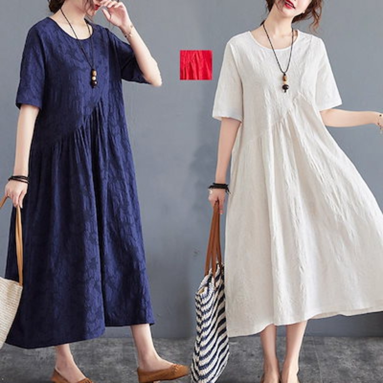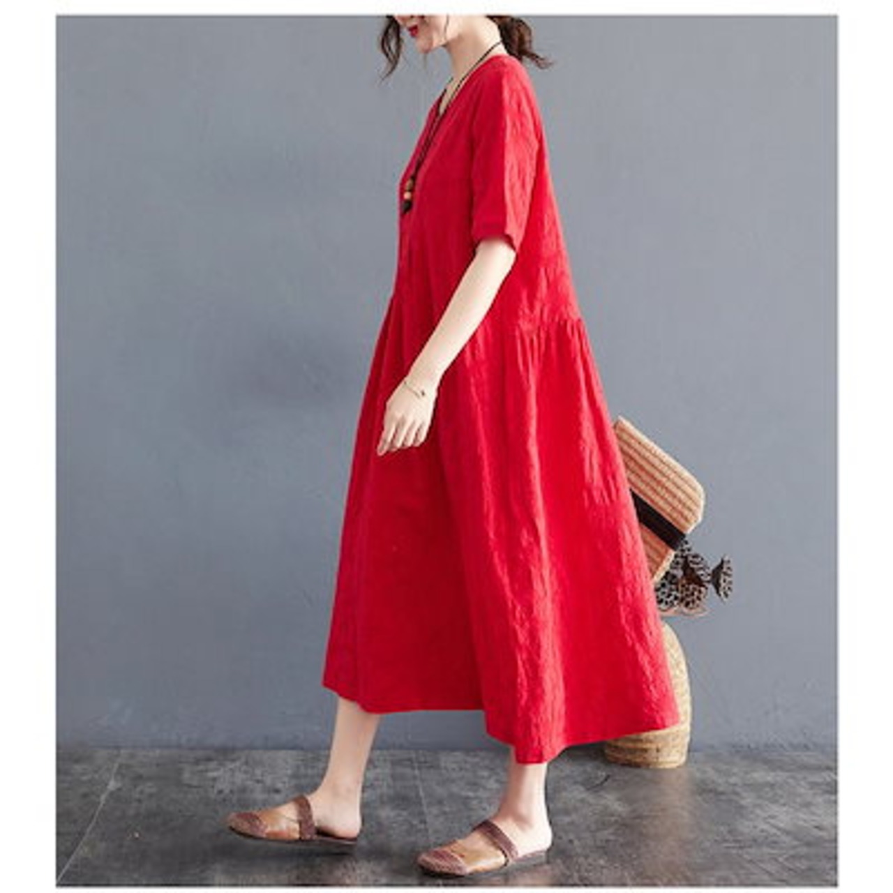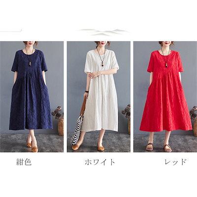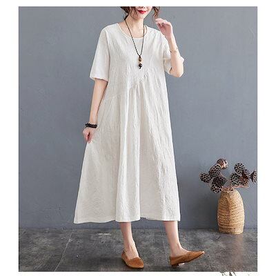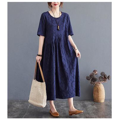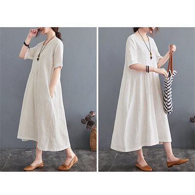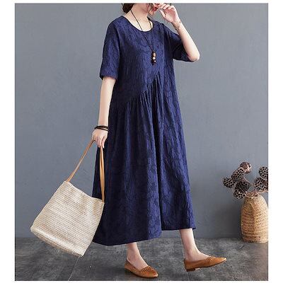 ワンピース レディース 夏 ロングワンピース aライン uネック ロングワンピ 切替 ロング ゆったり 綿麻混 おしゃれ きれいめ 大きいサイズ 着痩せ