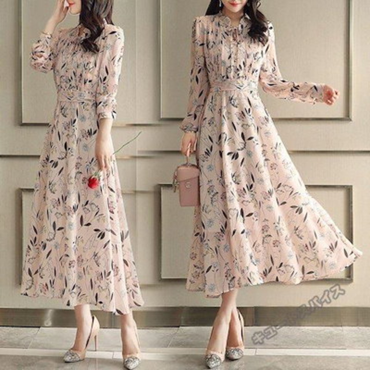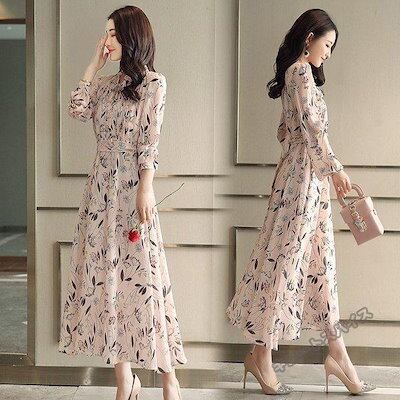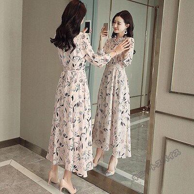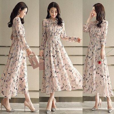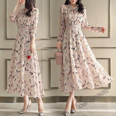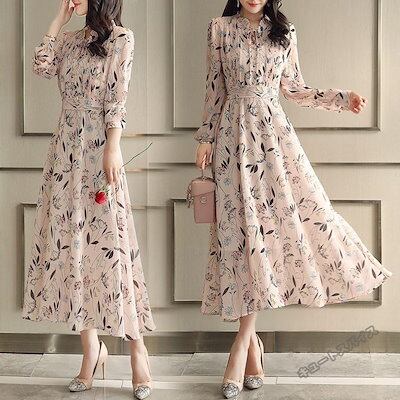 ワンピース レディース おしゃれ きれいめ 着痩せ 春秋 花柄 Aライン シャツワンピース ロング丈 40代長袖 ワンピース シフォン 韓国風 上品 新作 30代