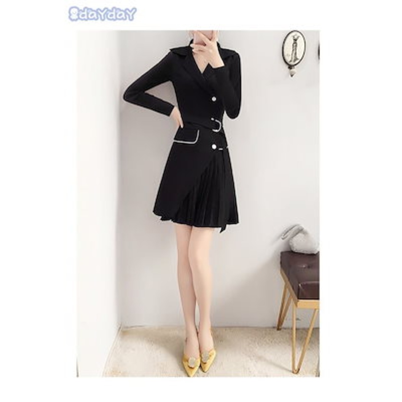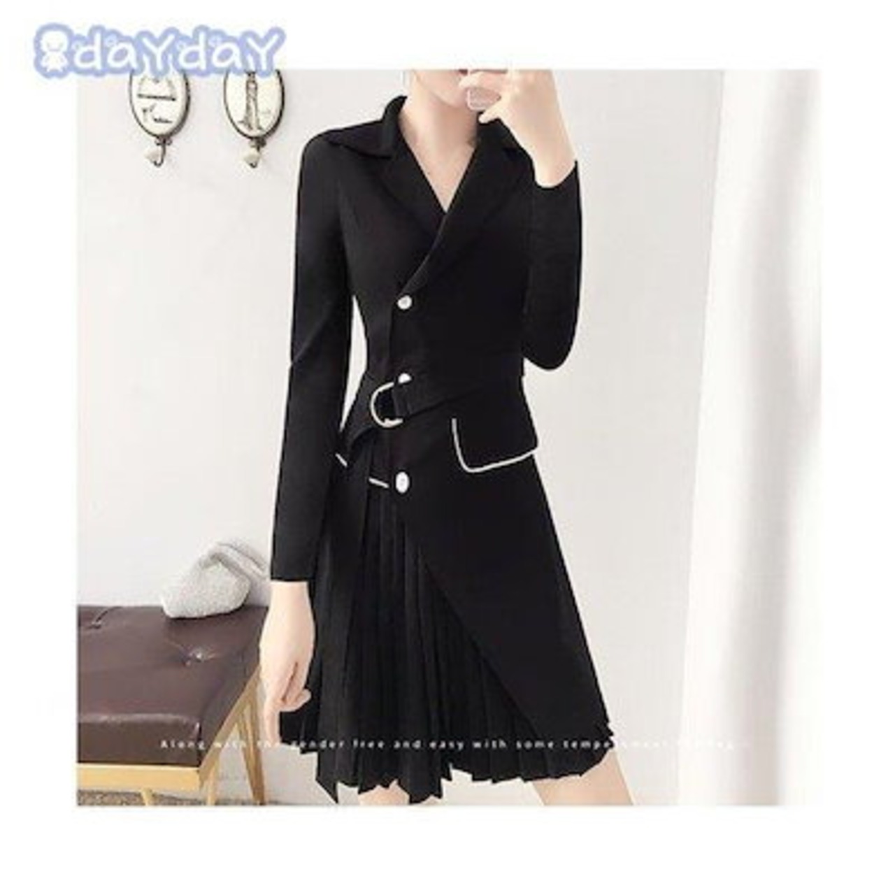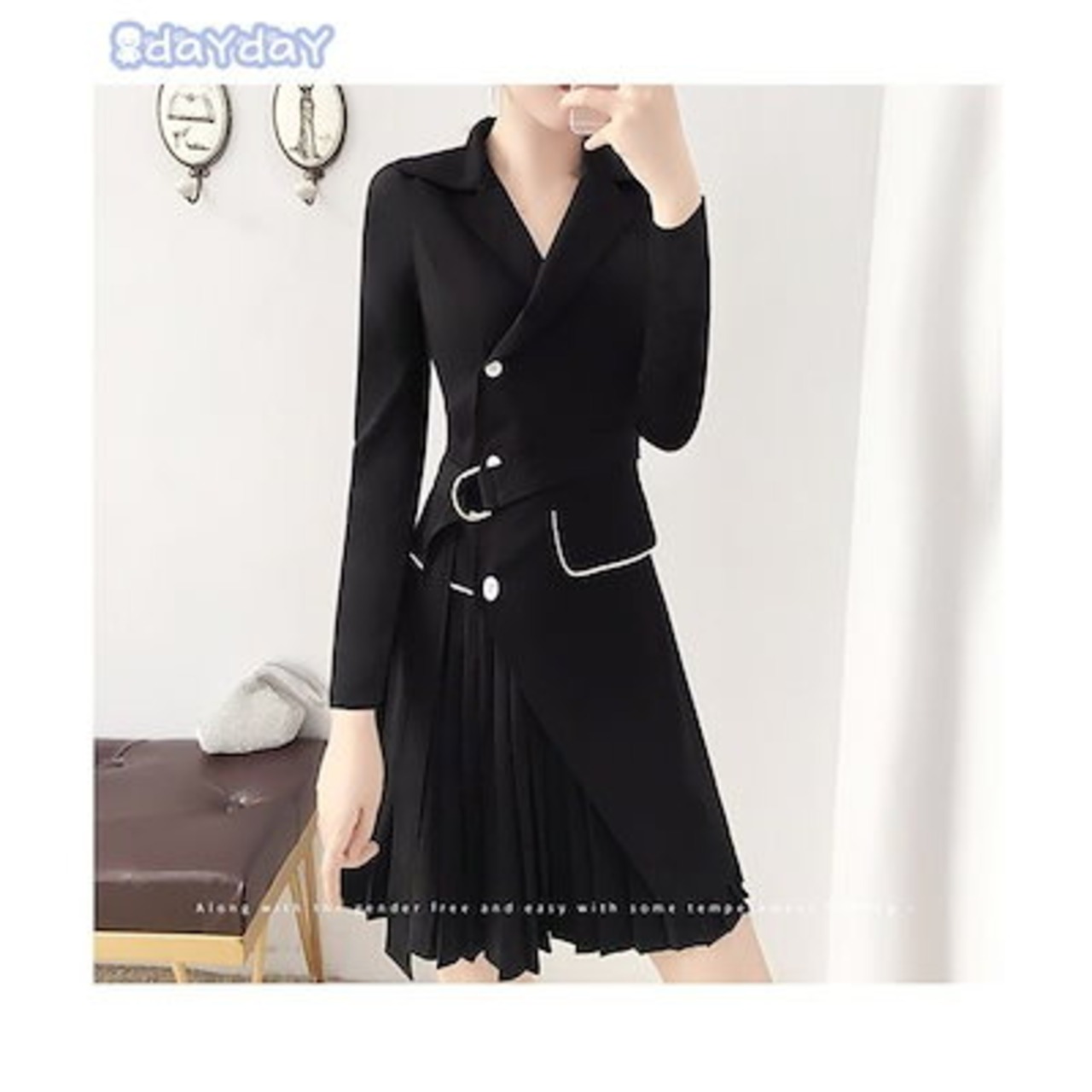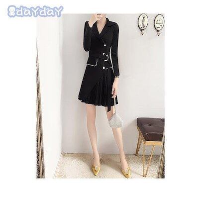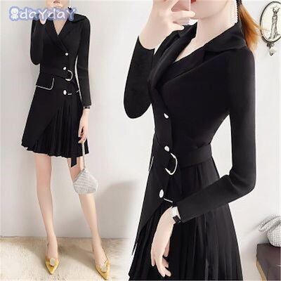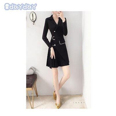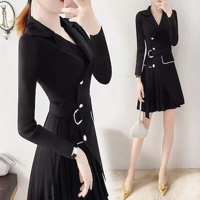 スーツワンピース レディース きれいめ ワンピース 40代 Aライン プリーツワンピース Vネック ミディアム丈 長袖 フォーマルワンピ 卒業式 入学式 通勤 OL 大人