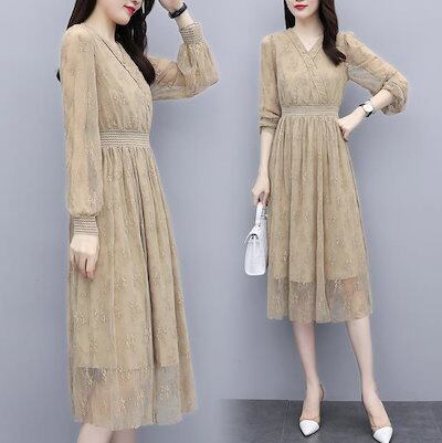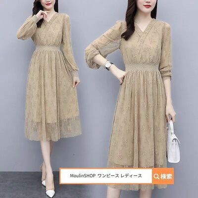 レディース レディース ロングワンピース ロング レース 花柄 膝丈 きれいめ Aライン フレア 大人 上品 春 夏 秋 秋冬 長袖 大きいサイズ カジュアル