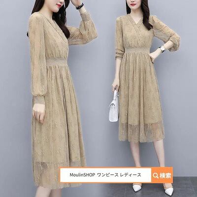 ワンピース レディース レディース ロングワンピース ロング レース 花柄 膝丈 きれいめ Aライン フレア 大人 上品 春 夏 秋 秋冬 長袖 大きいサイズ カジュアル