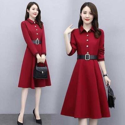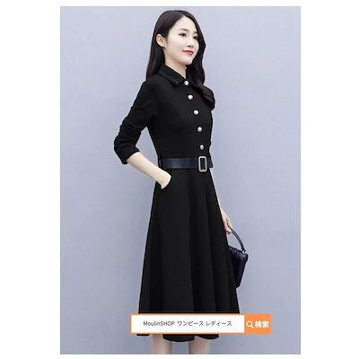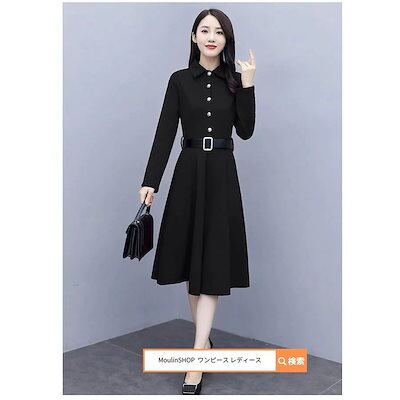 ワンピース レディース レディース ロングワンピース ロング 膝丈 きれいめ Aライン シンプル 大人 上品 黒 ミディアム丈 春 秋 秋冬 ワンピ 長袖 大きいサイズ