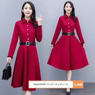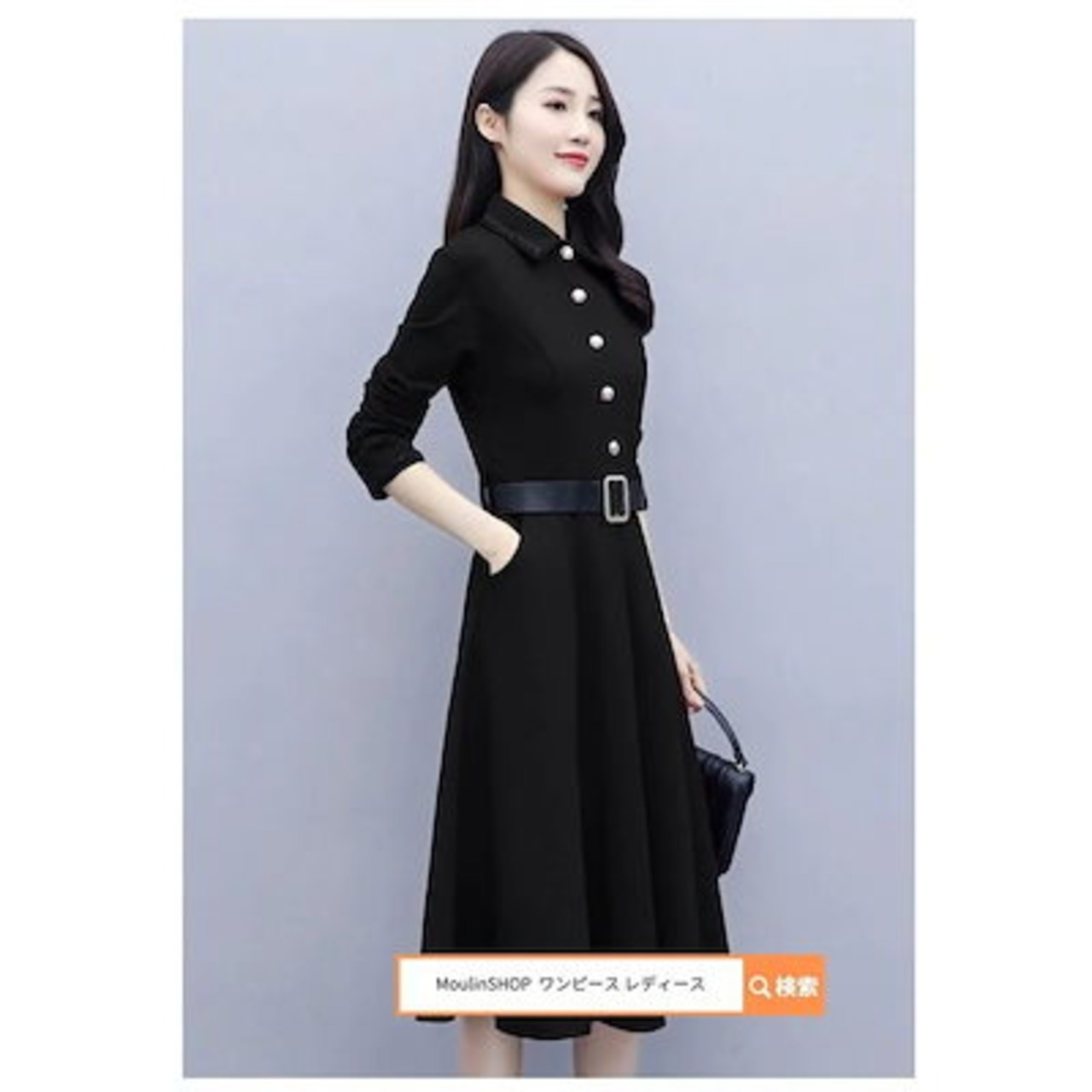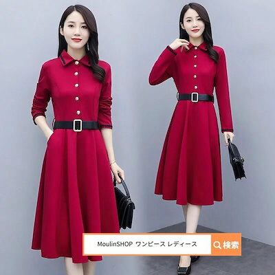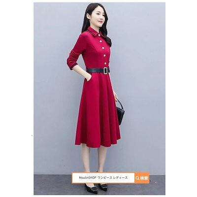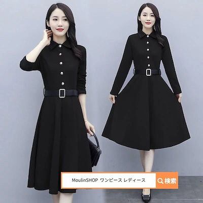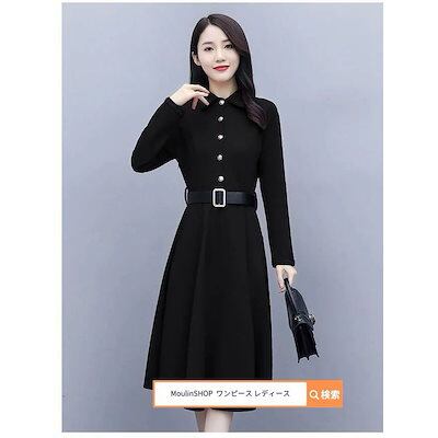 レディース レディース ロングワンピース ロング 膝丈 きれいめ Aライン シンプル 大人 上品 黒 ミディアム丈 春 秋 秋冬 ワンピ 長袖 大きいサイズ
