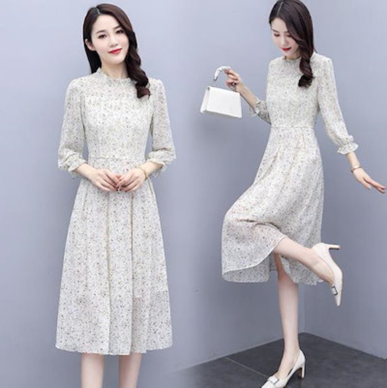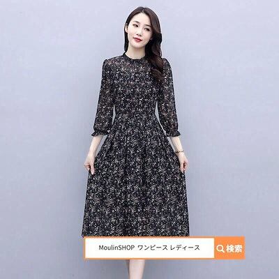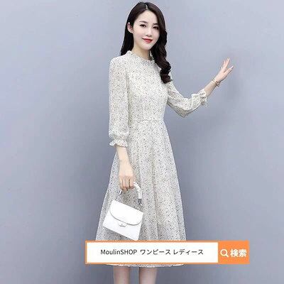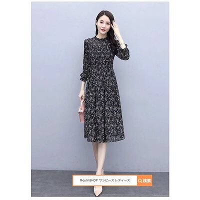 レディース ワンピース レディース ロングワンピース ロング 膝丈 きれいめ Aライン プリーツ 大人 上品 シフォン 春 夏 秋 秋冬 長袖 大きいサイズ