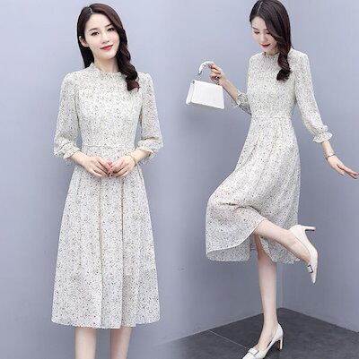 ワンピース レディース ワンピース レディース ロングワンピース ロング 膝丈 きれいめ Aライン プリーツ 大人 上品 シフォン 春 夏 秋 秋冬 長袖 大きいサイズ