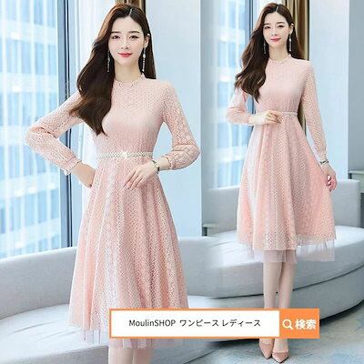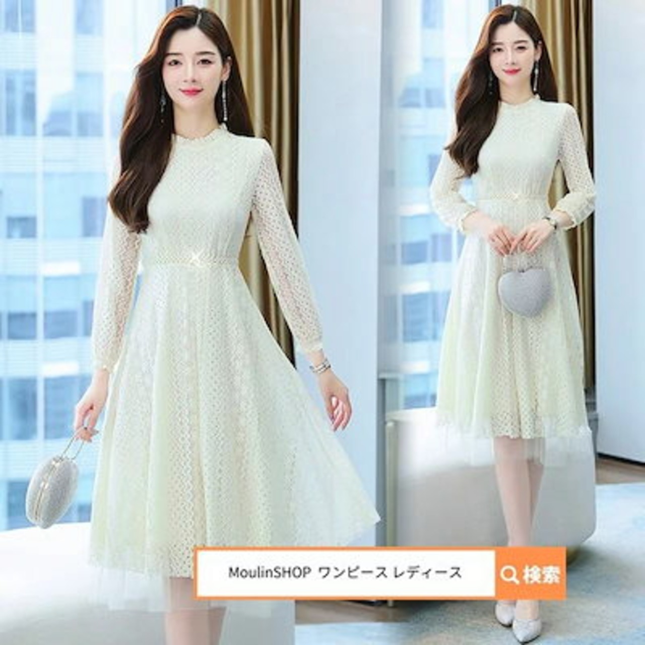 レディース レディース ロングワンピース 花柄 レース 膝丈 ロング ミモレ丈 きれいめ Aライン フレア 大人 上品 リゾート フォーマル 長袖 大きいサ