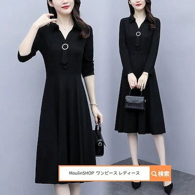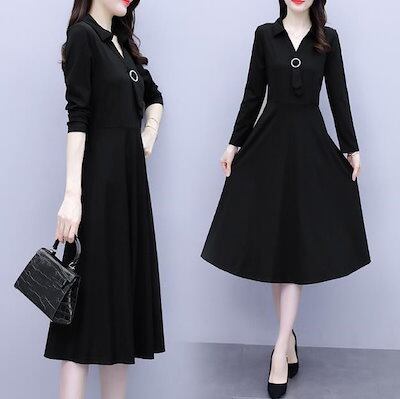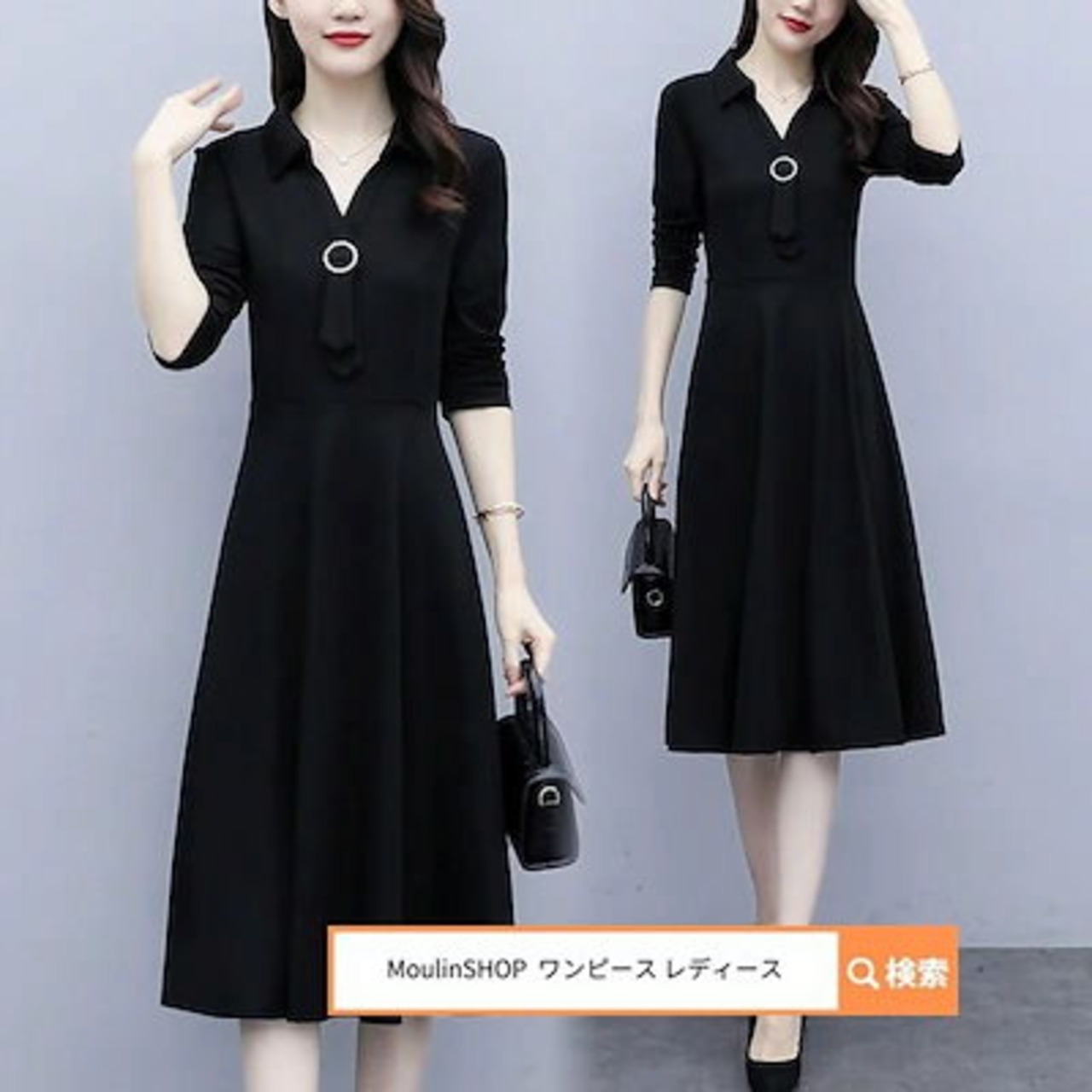 袖 大きいサイズ レディース レディース ロングワンピース ロング ミモレ丈 膝丈 きれいめ Aライン フレア 大人 上品 黒 春 夏 秋 秋冬 長カジュアル