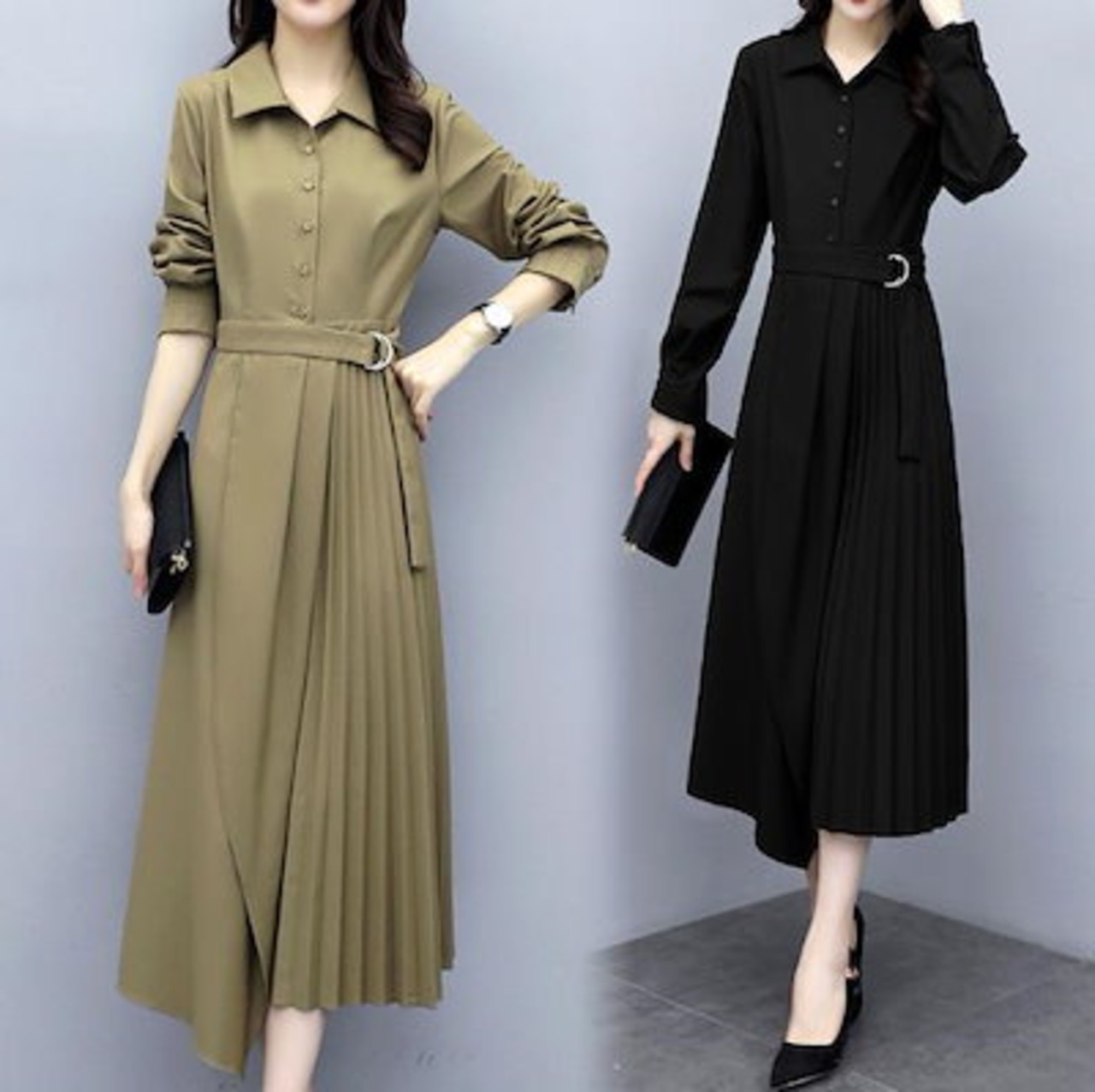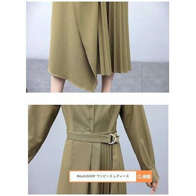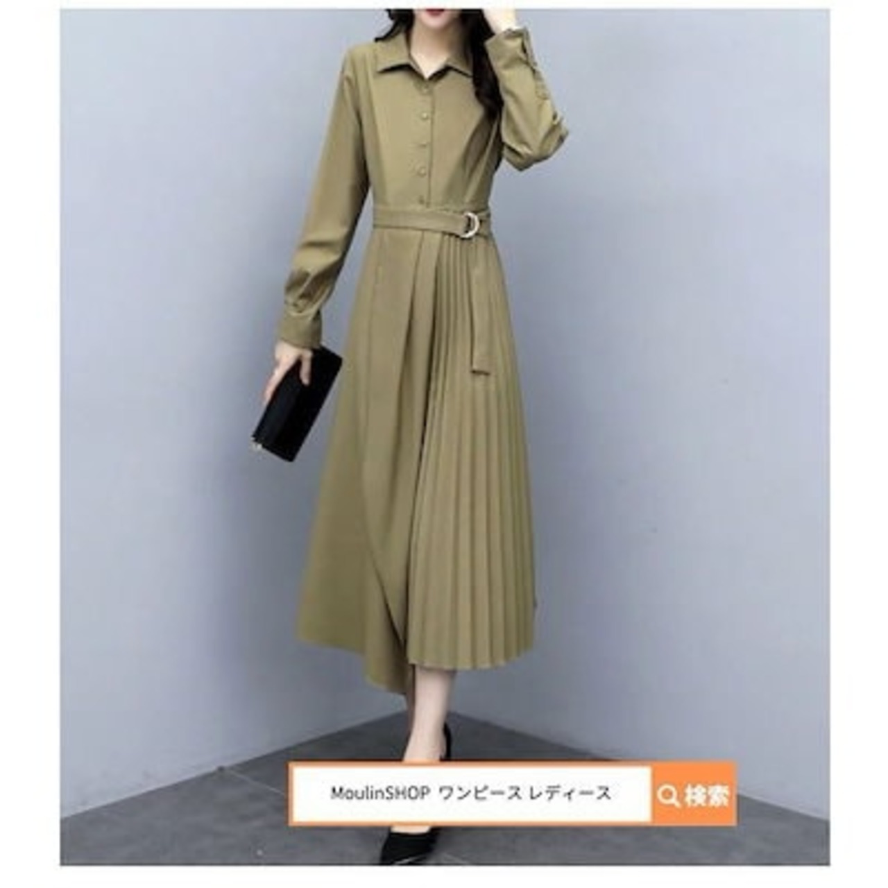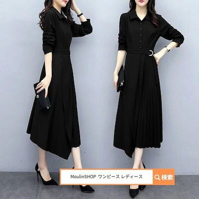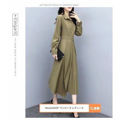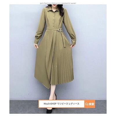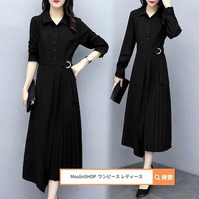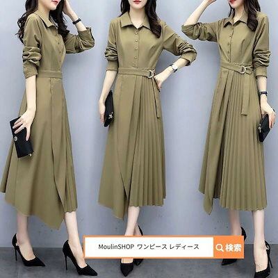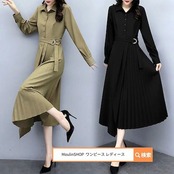 レディース レディース ロングワンピース シャツワンピース ロング プリーツ きれいめ Aライン サイドプリーツ 大人 春 春夏 夏 秋 秋冬 長袖 大きい