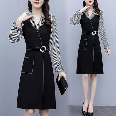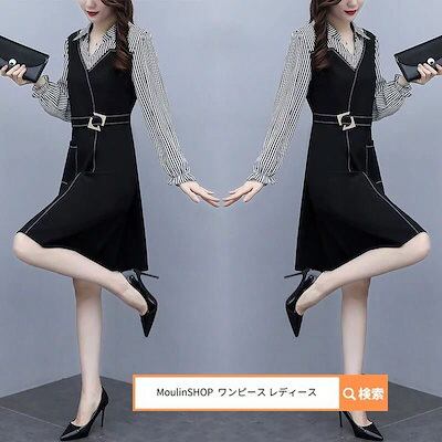 秋冬 長袖 大きいサイ ワンピース レディース 春 春夏 レディース ロングワンピース シャツワンピース ストライプ ロング きれいめ Aライン 切り替え 大人 夏 秋