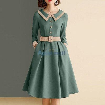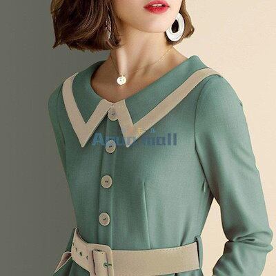 人気商品超目玉 シャツワンピース レディース ワンピース 春新作 きれいめ 膝丈ワンピース 長袖 シャツワンピース Aラインスカート 着痩せ 通勤 結婚式 お出かけ 大人