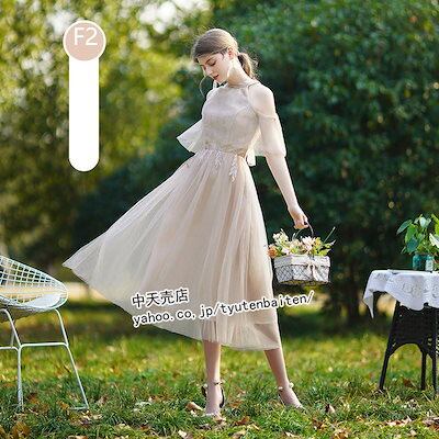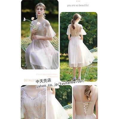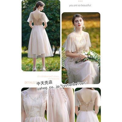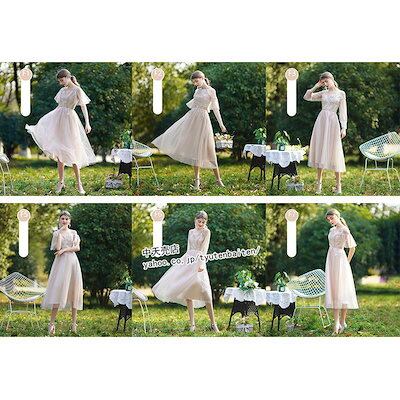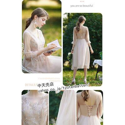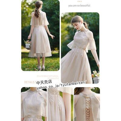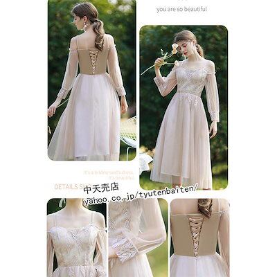 ウェディングドレス 花嫁ドレス パーティードレス ロングワンピース ミモレワンピース レディース 大人 エレガント きれいめ 結婚式 Aライン 着痩せ 披露宴