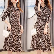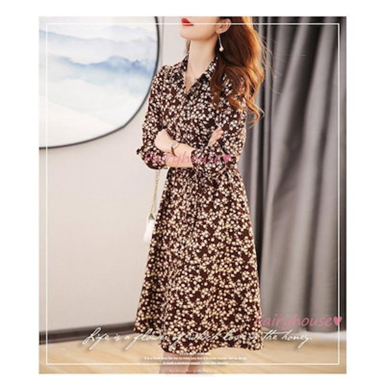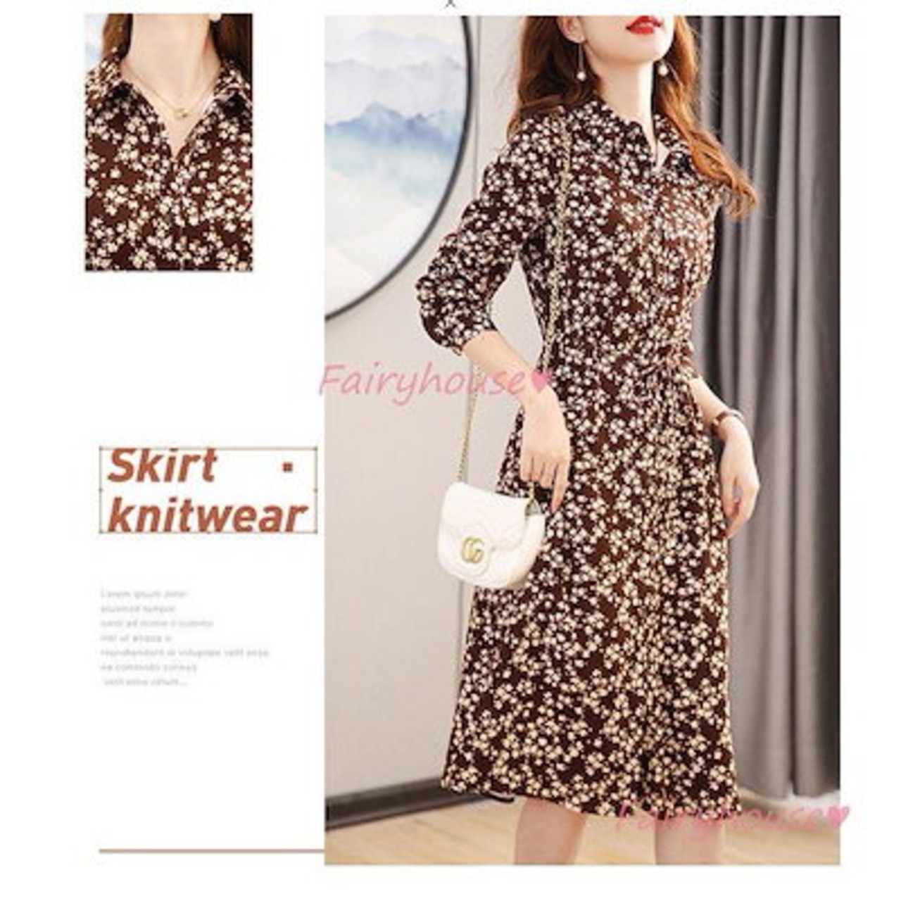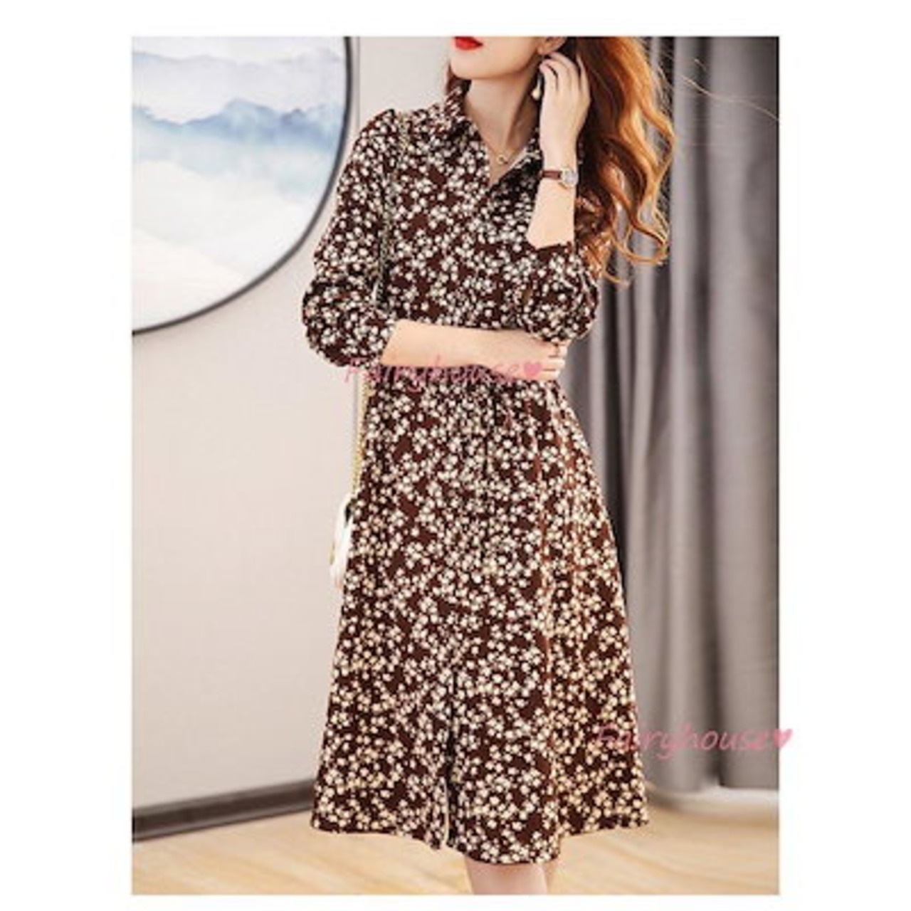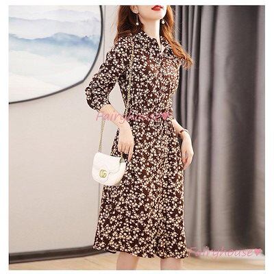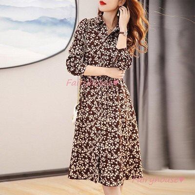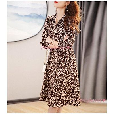 ワンピース レディース 40代 きれいめ シャツワンピース 花柄シフォン Aラインスカートオシャレ秋服 長袖ワンピース お出かけ 大人 体型カバー 30代 50代