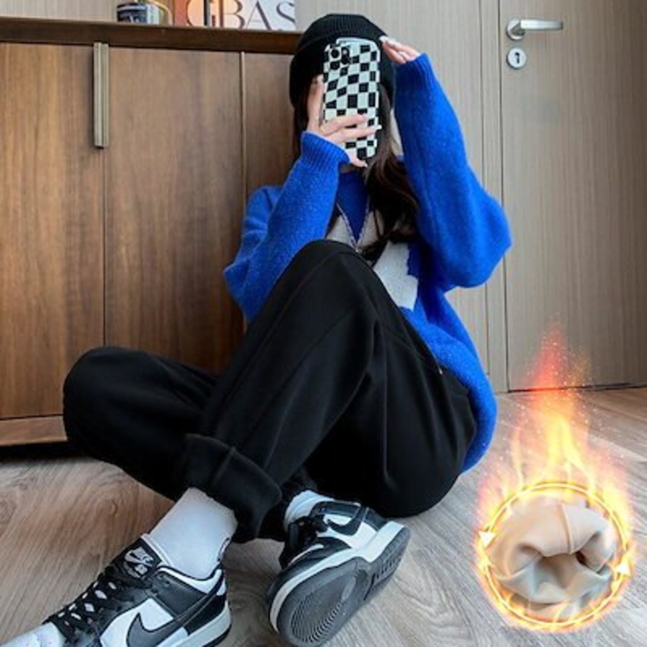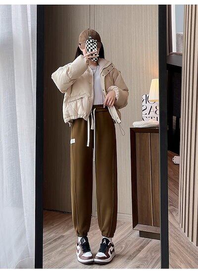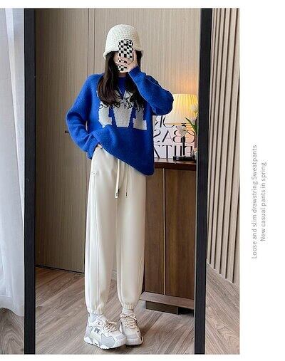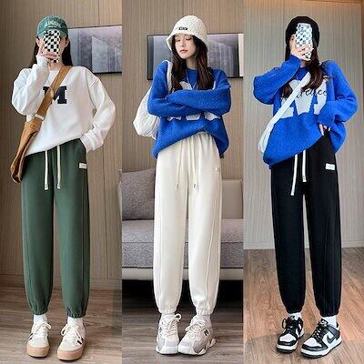 裏起毛ニットパンツ厚手ジャージ★ストリートウェア 韓国スタイル ボトム カーゴパンツ ワイドレッグ ヒップポップ ハイウエスト カジュアル ジョガーパンツ